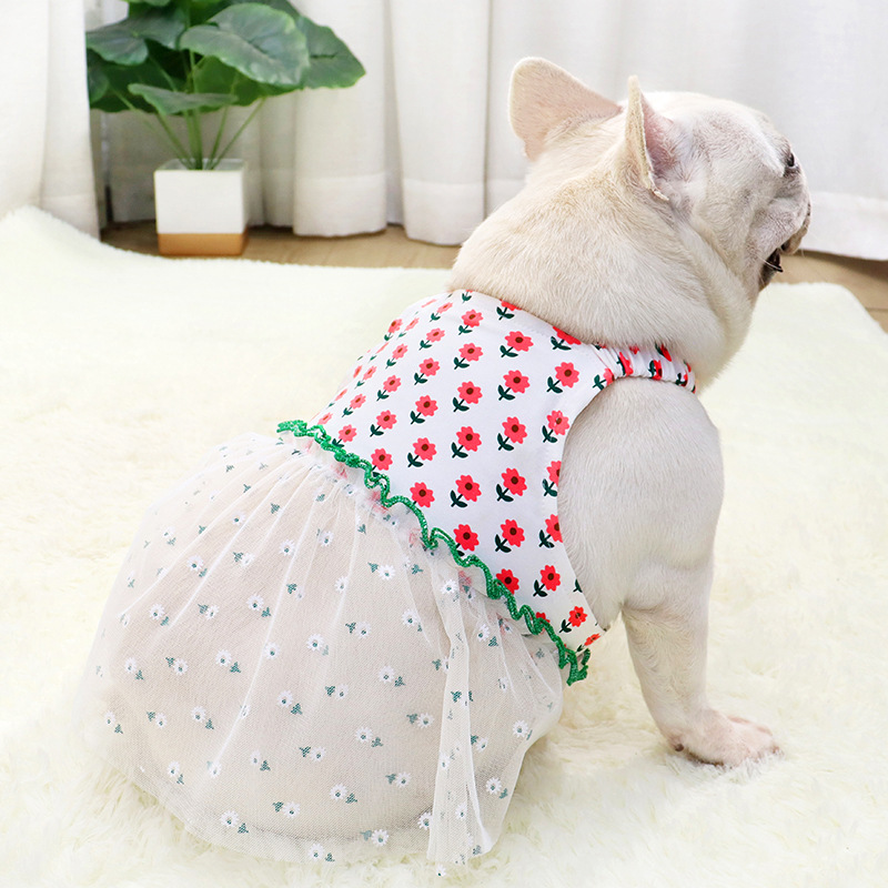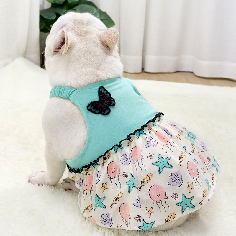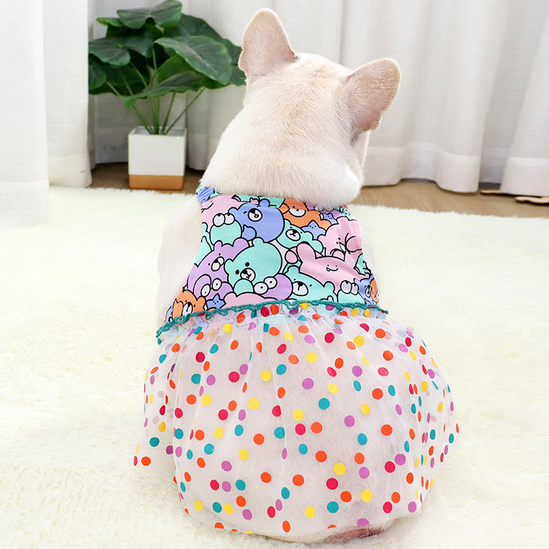 Fadou 치마 여름 짧은 치마 푹신한 치마 귀여운 숙녀 뚱뚱한 개 짧은 몸 여름 개 조끼 불독 퍼그 개스토어 가기