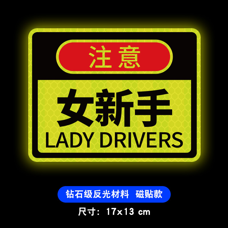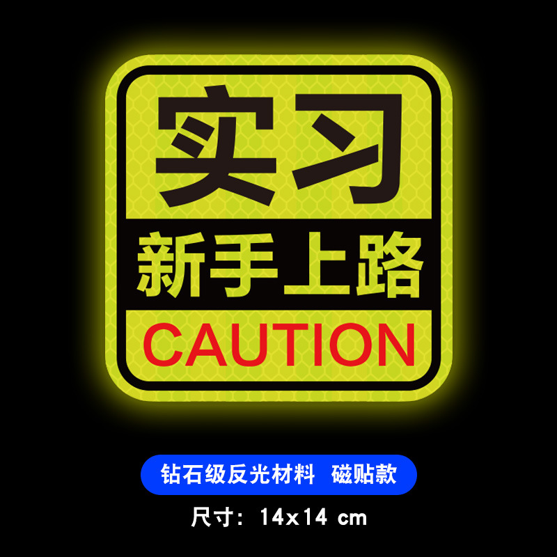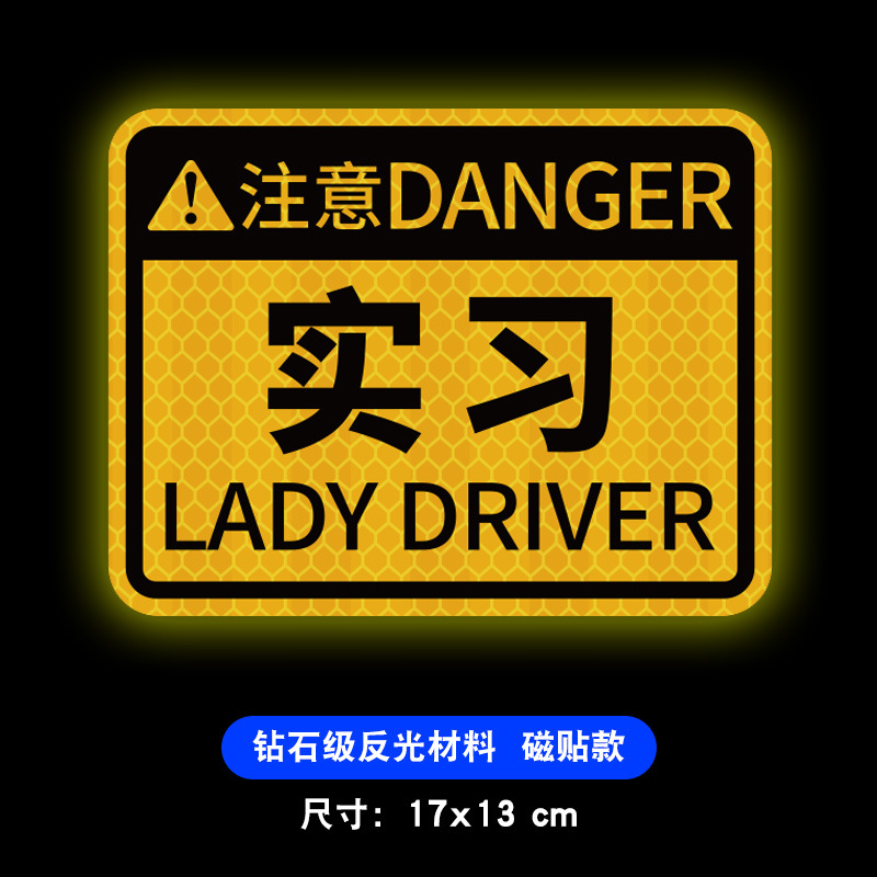 도로에 인턴쉽 초보자 자기 로고 창조적 인 자기 강한 반사 큰 팁 자동차 스티커를 운전 여성 드라이버스토어 가기