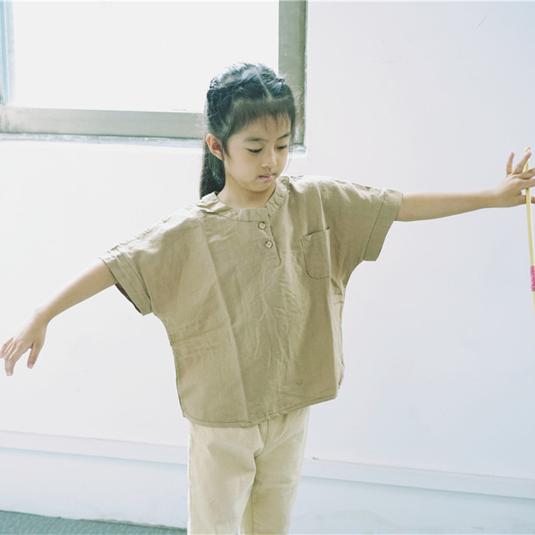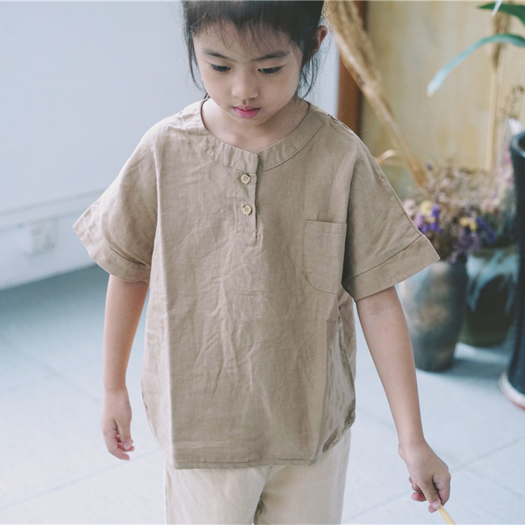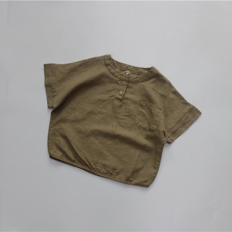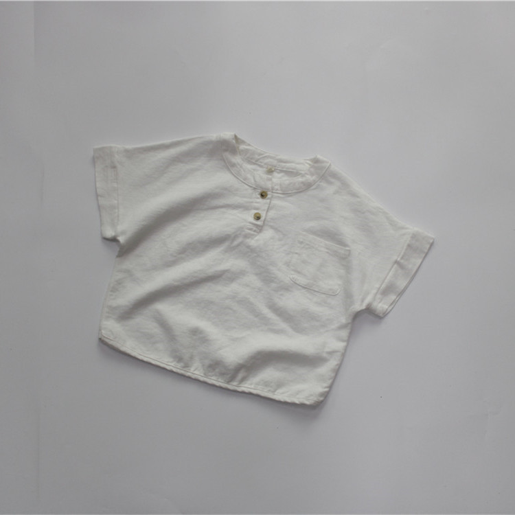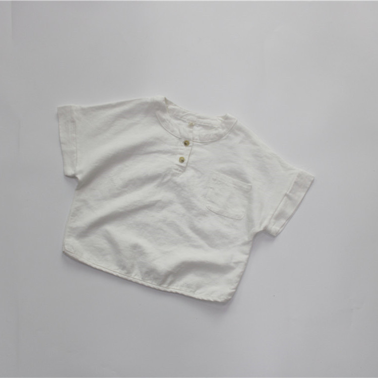 2026 봄 신상 아동 티셔츠 라운드넥 반팔 남아 단색 한국 스타일 단추 여아 상의 여름 다용도