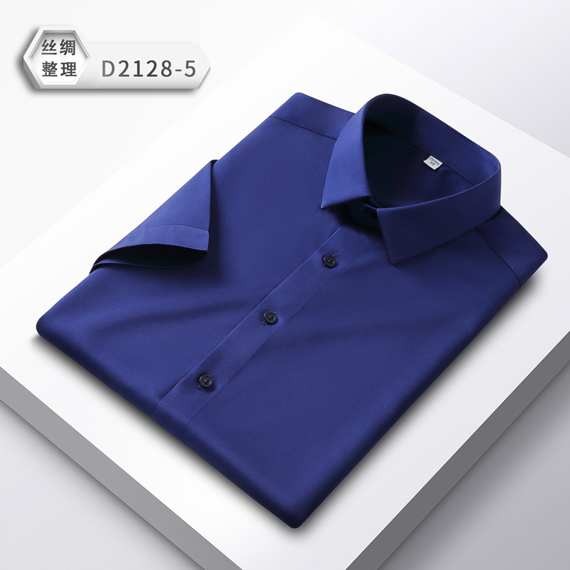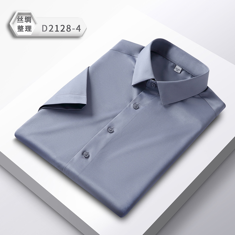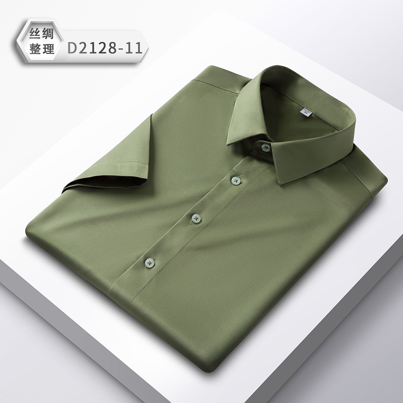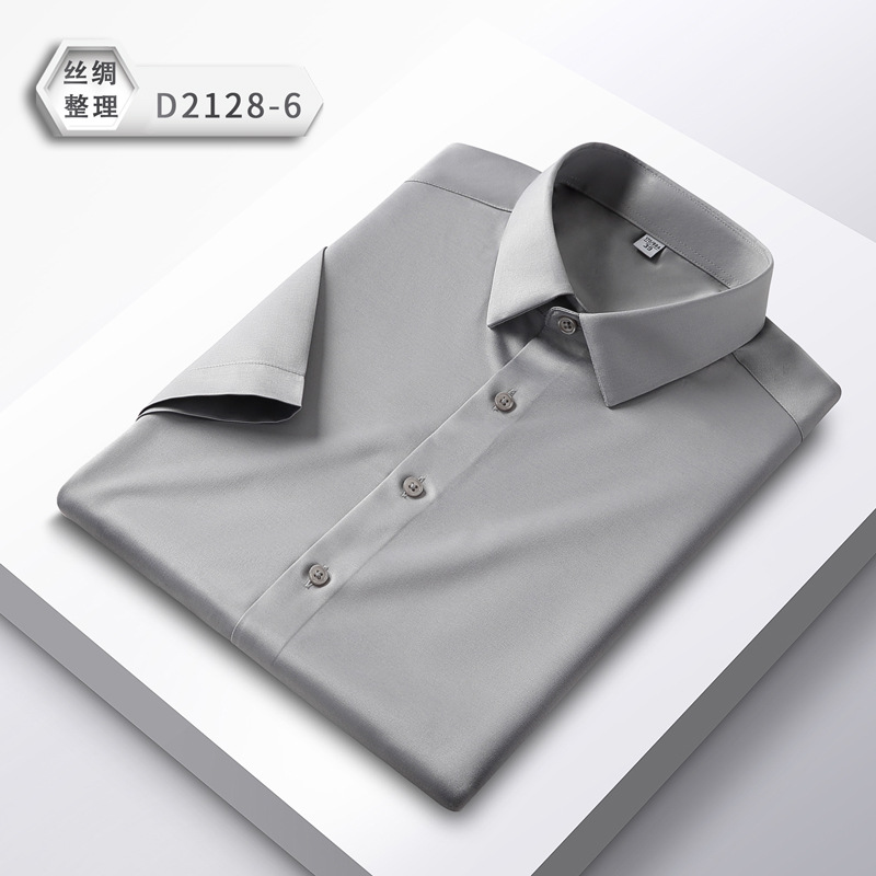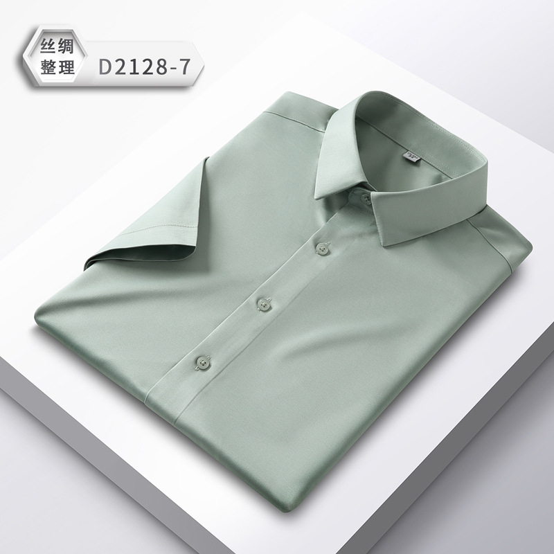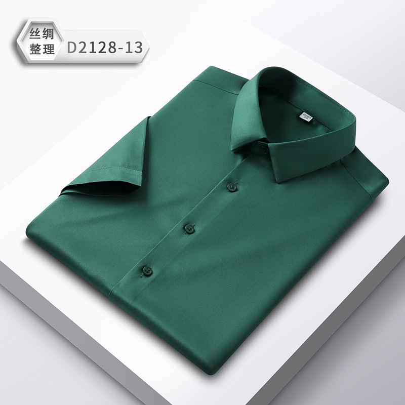 2026년 신상품 남성용 신축성 실크 반팔 셔츠, 다림질 필요 없는 단색 통기성 캐주얼 슬림핏 비즈니스 남성 셔츠스토어 가기