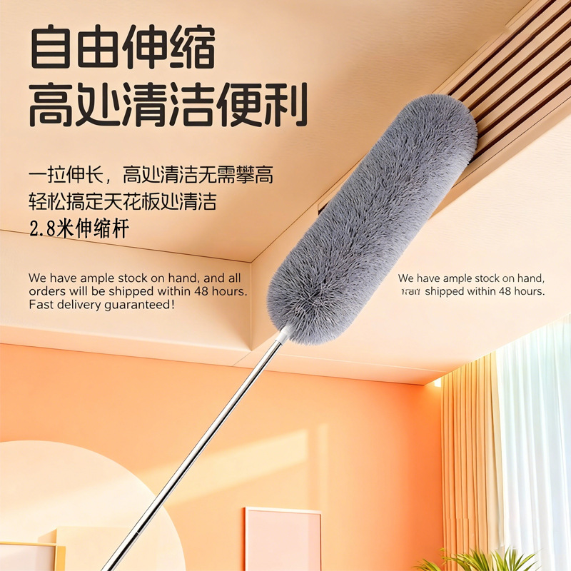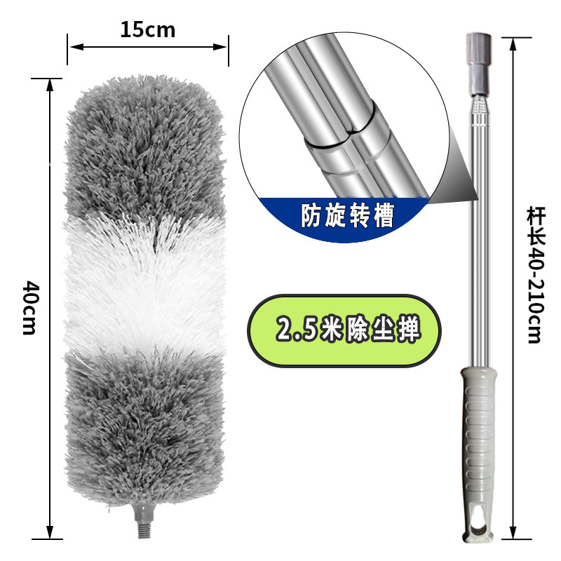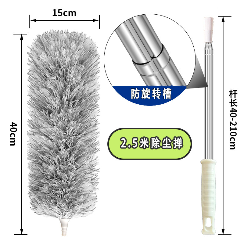 닭털 먼지떨이, 스테인리스 초극세사 먼지떨이, 천장 청소용 연장형, 접이식 먼지떨이