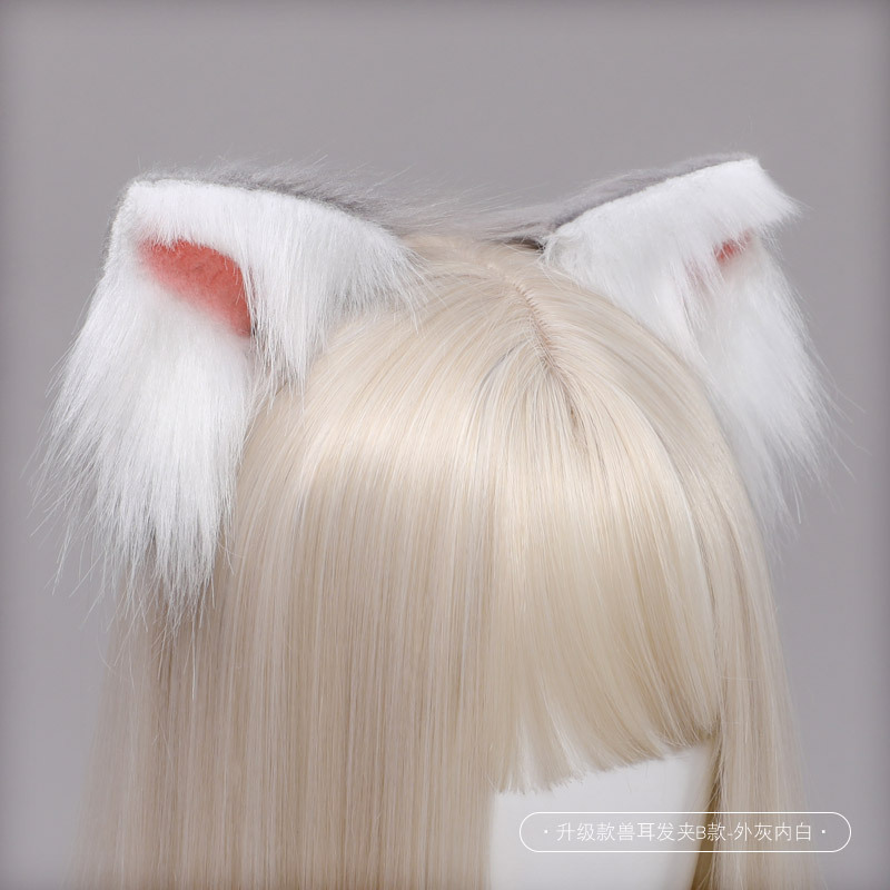 • Q-업그레이드 버전 동물 귀 머리핀 B형 - 겉면 회색, 안쪽 흰색