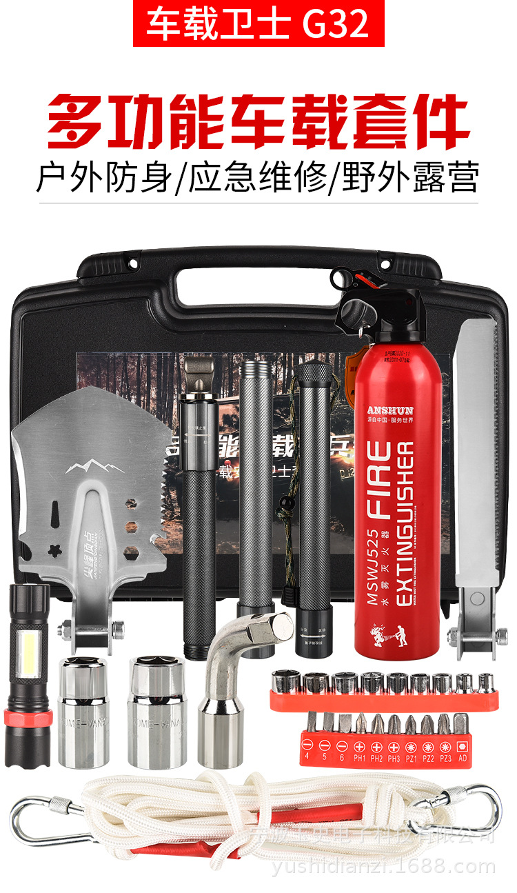 Peak Vertex 자동차 가드 G32 야외 생존 엔지니어링 삽 손전등 소화기 트레일러 로프 소켓 렌치