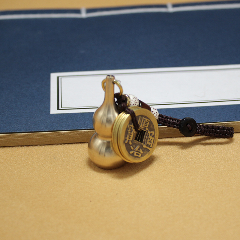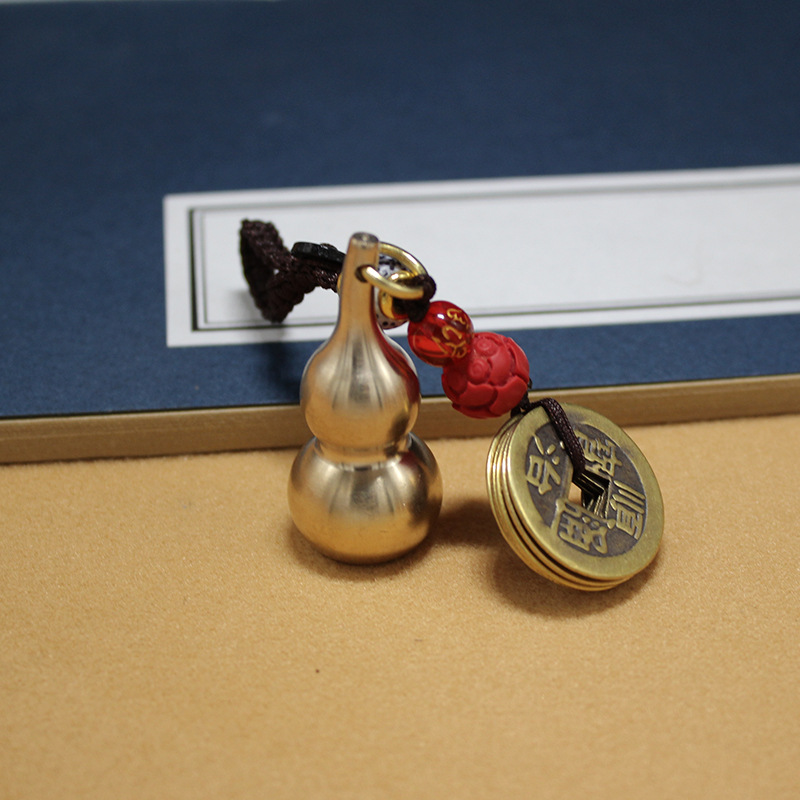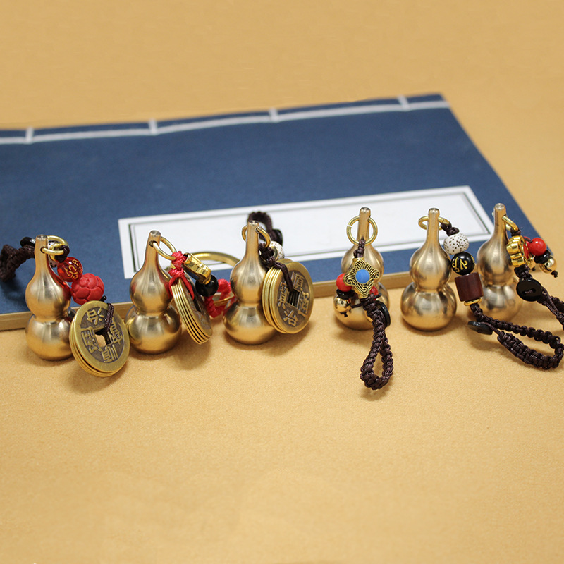 순수 구리 조롱박 펜던트 금속 공예 티베트 경전 황동 조롱박 열쇠 고리 액세서리 5 황제 돈 자동차 펜던트스토어 가기