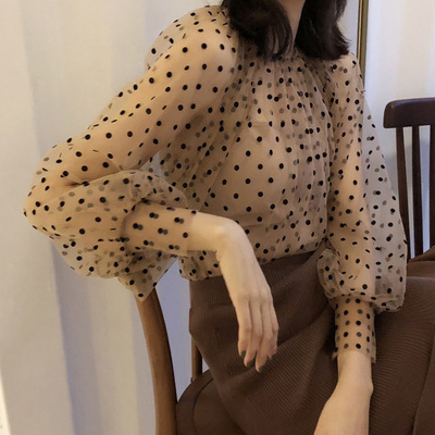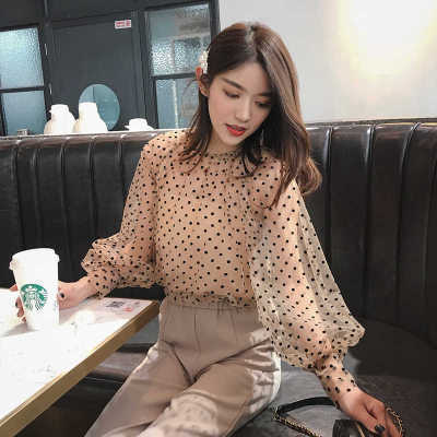 한국 롯데 2023 봄 스몰 캐미솔 + 웨이브 도트 블라우스 긴팔 쉬폰 셔츠 세트 여성용 투피스 세트