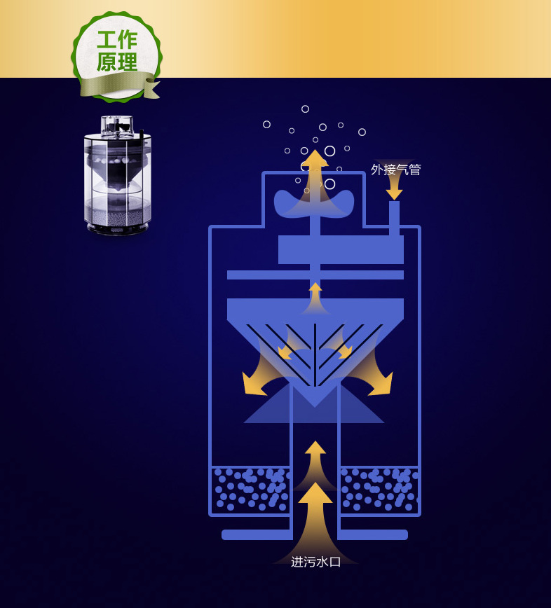 鱼缸吸便器,利用气流产生气泡,推动扇叶,产生向上吸的旋涡,从而把缸底部的粪便吸入产品内,详情查看以下工作原理图。