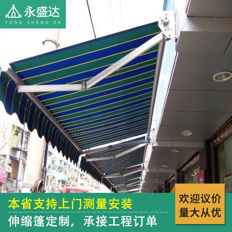 로고 인쇄 가능 상점용 차양 접이식 텐트 발코니 알루미늄 레인 캐노피 텐트 전동 커브 암 접이식 캐노피스토어 가기