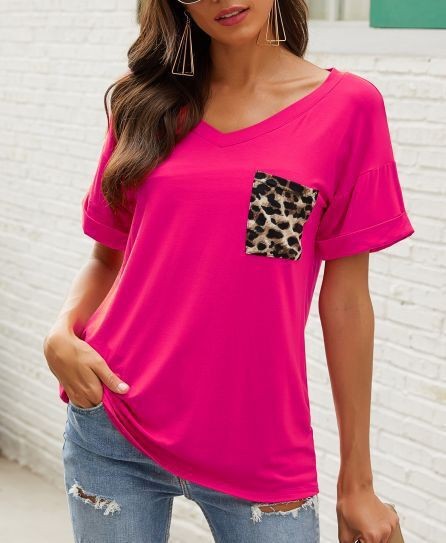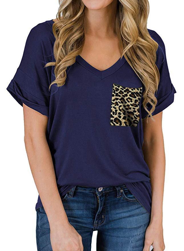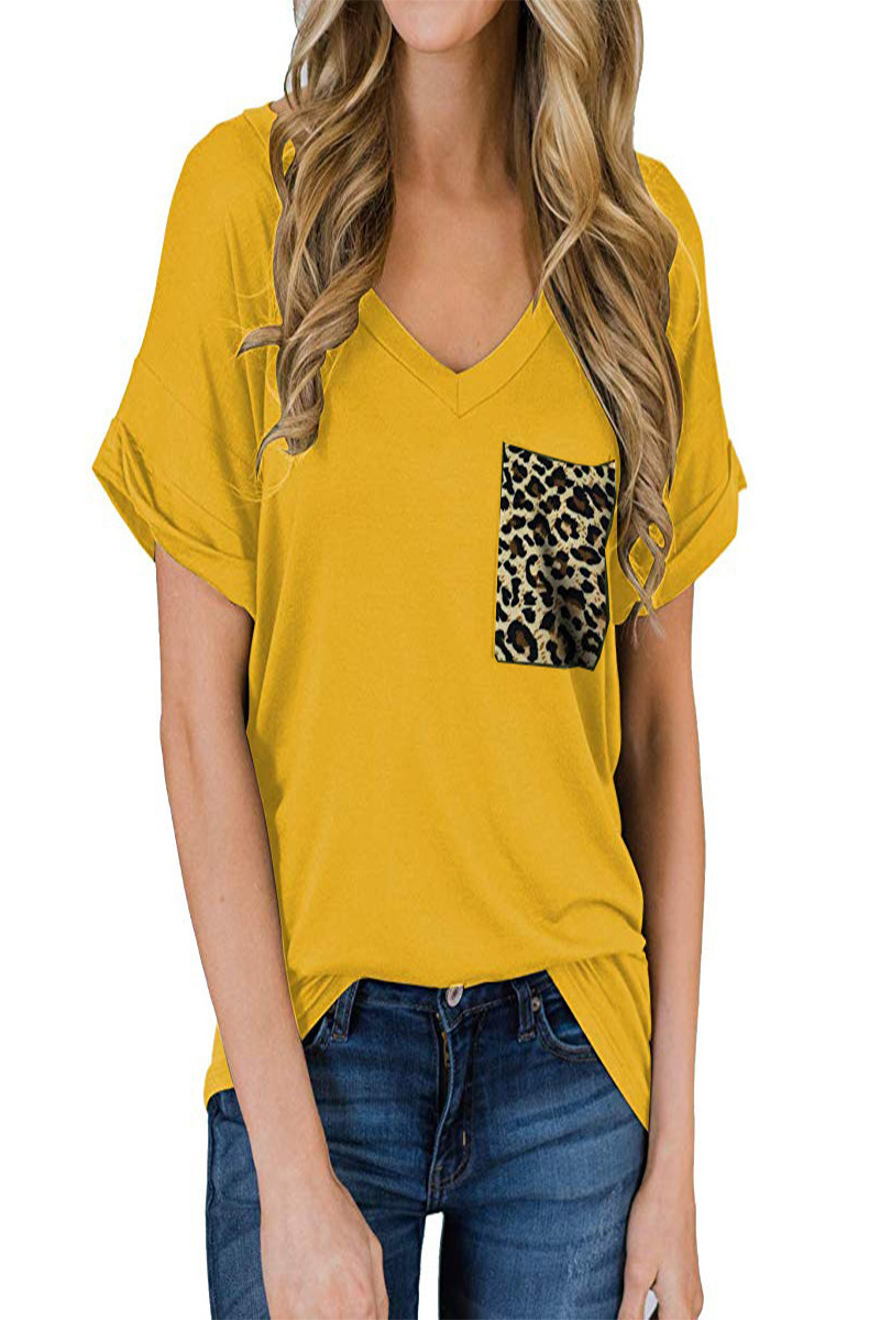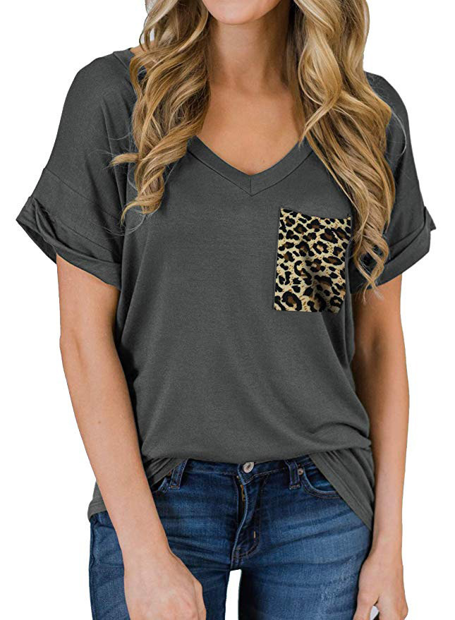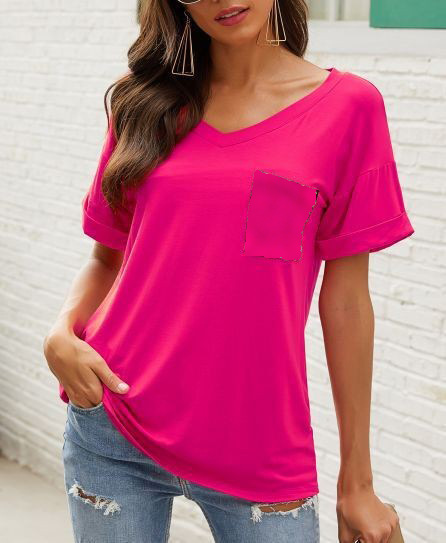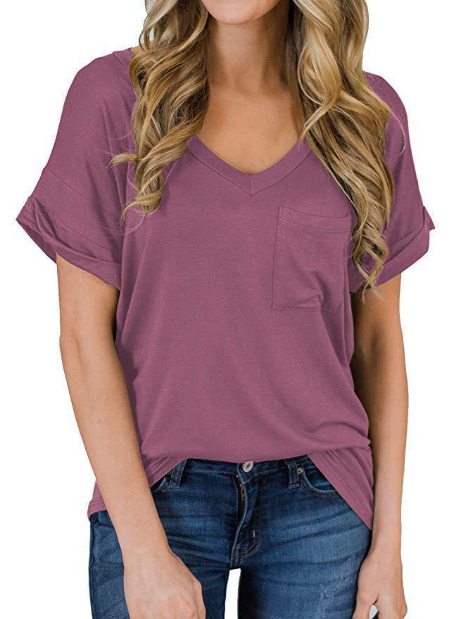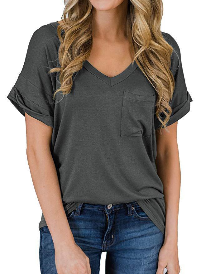 아마존 대형 사이즈 여성의 2024 봄/여름 V-Neck 포켓 티셔츠 아마존 유럽과 미국 커드 짧은 소매 느슨한 탑스토어 가기