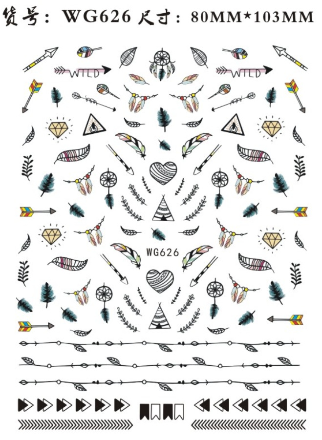 눈 깃털 네일 아트 스티커 신상 인디언 스타일 네일 아트 스티커 제조사 재고 WG626-632