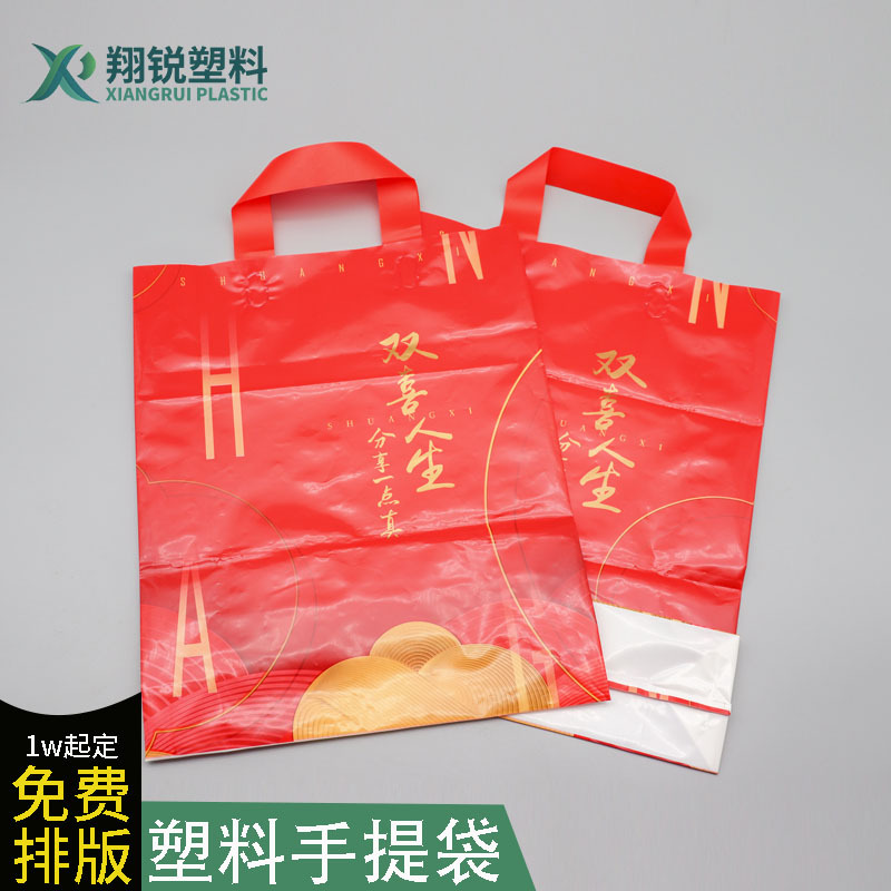 맞춤형 PE 핸드백 가공 빨간색과 노란색 2색 슬링 플라스틱 핸드백 선물 광고 쇼핑백 제조업체스토어 가기