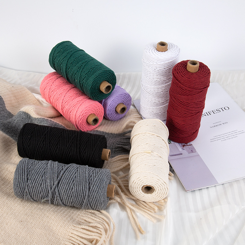 재고 도매 색상 3mm 코튼 코드 DIY 수제 태피스트리 드로우 스트링 꼰 로프 코튼 로프스토어 가기