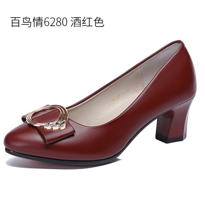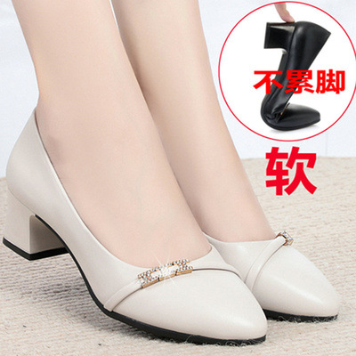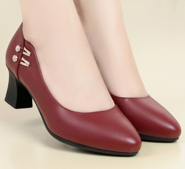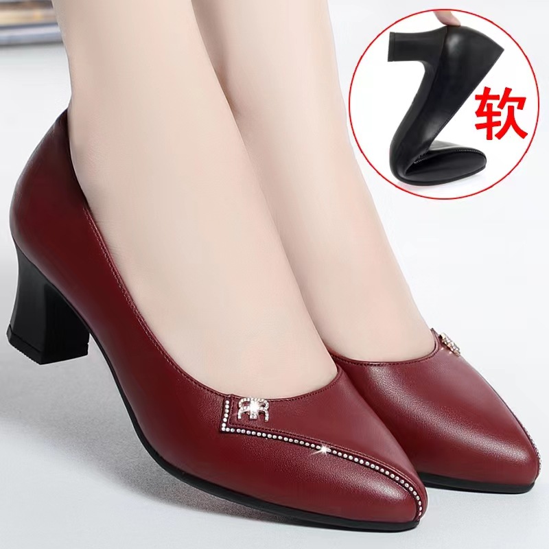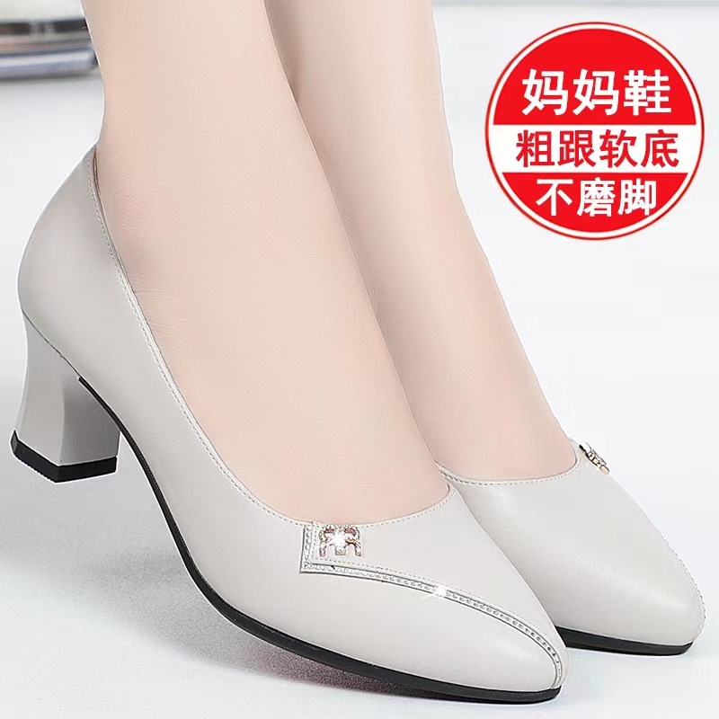 엄마 신발, 부드러운 밑창 여성용 봄/가을 편안한 라운드 토 2025 여름 여성화, 중간 굽 중년/노년 캐주얼 가죽 신발스토어 가기