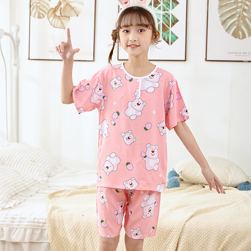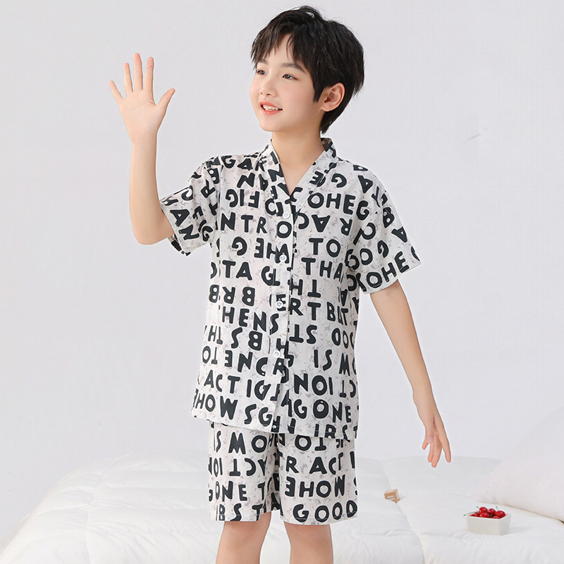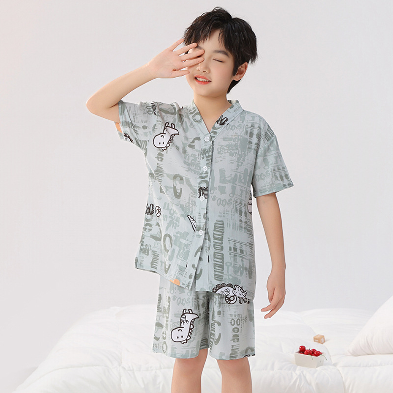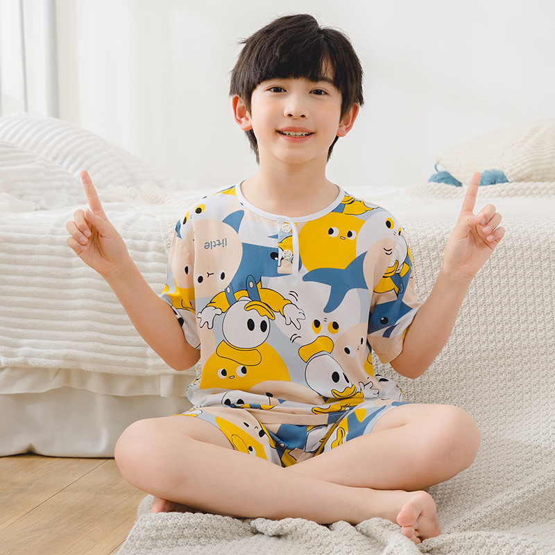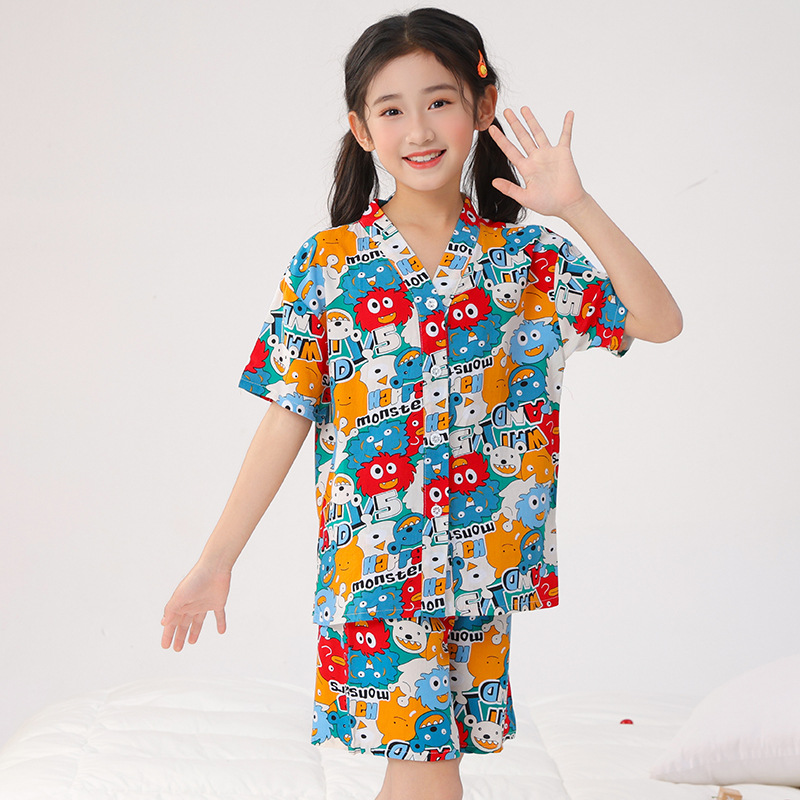 여름 어린이 잠옷, 가정복, 소년 소녀 반팔 양복, 큰 어린이 얇은 아동복, 여름 아기스토어 가기
