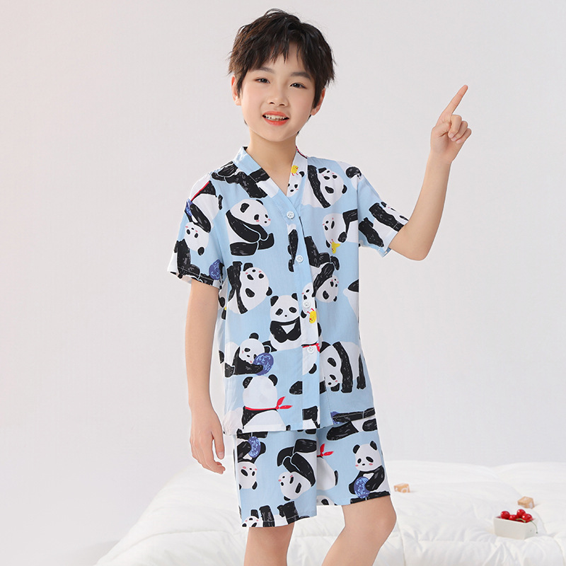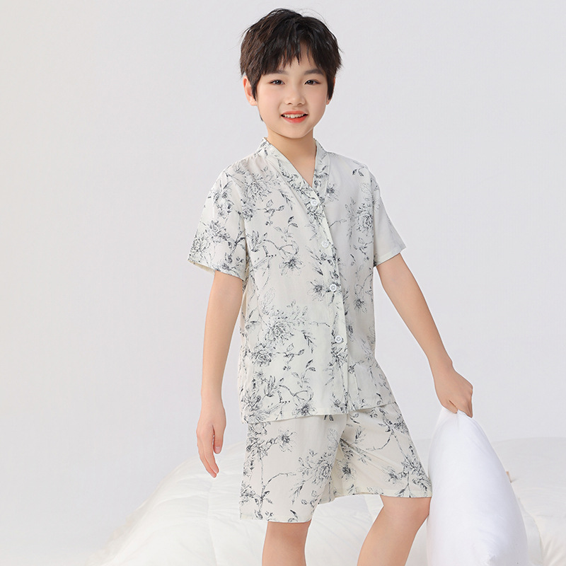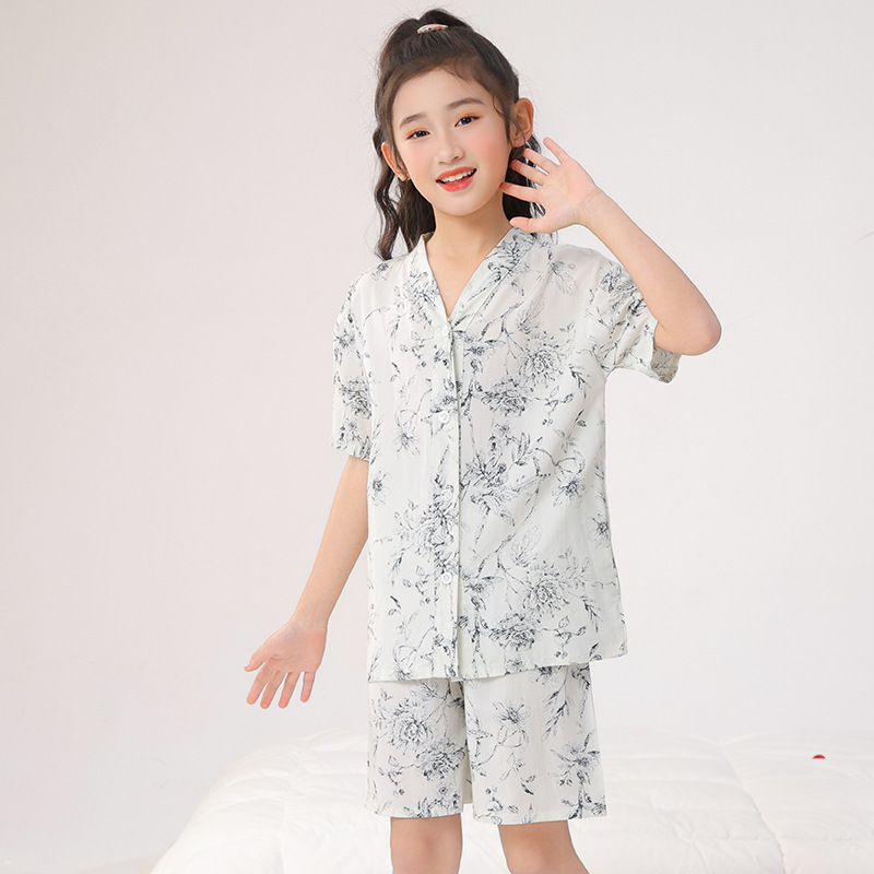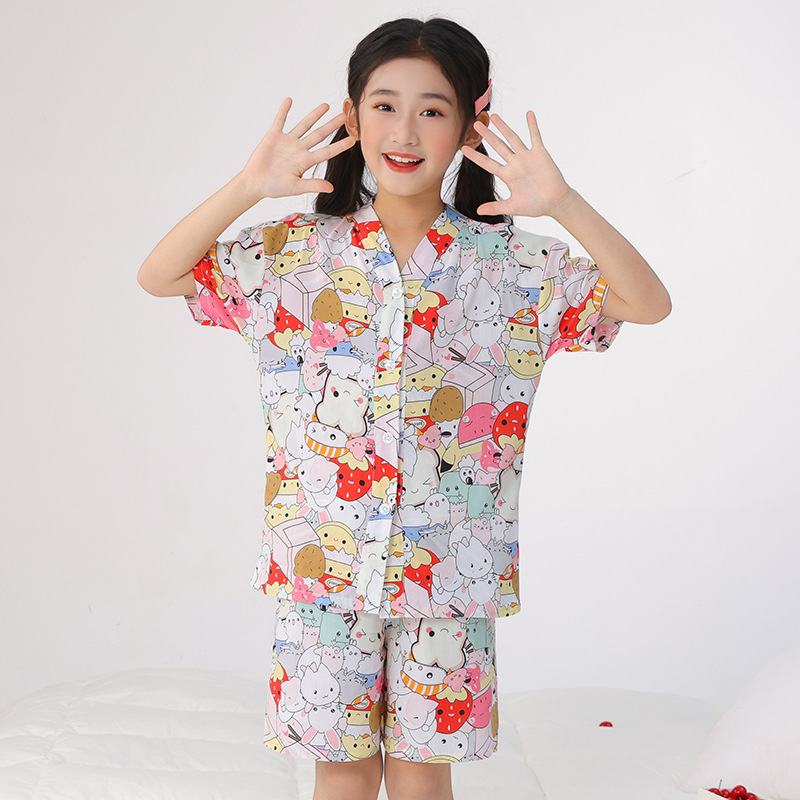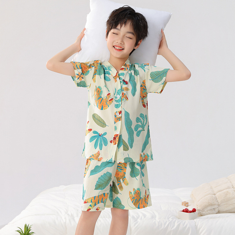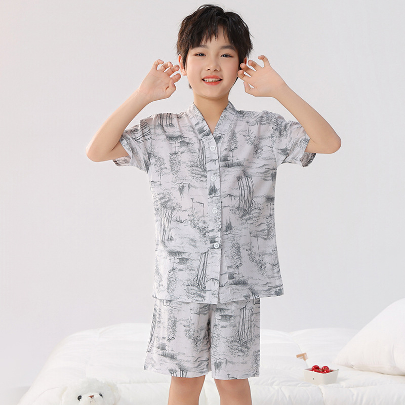 여름 어린이 잠옷, 가정복, 소년 소녀 반팔 양복, 큰 어린이 얇은 아동복, 여름 아기스토어 가기