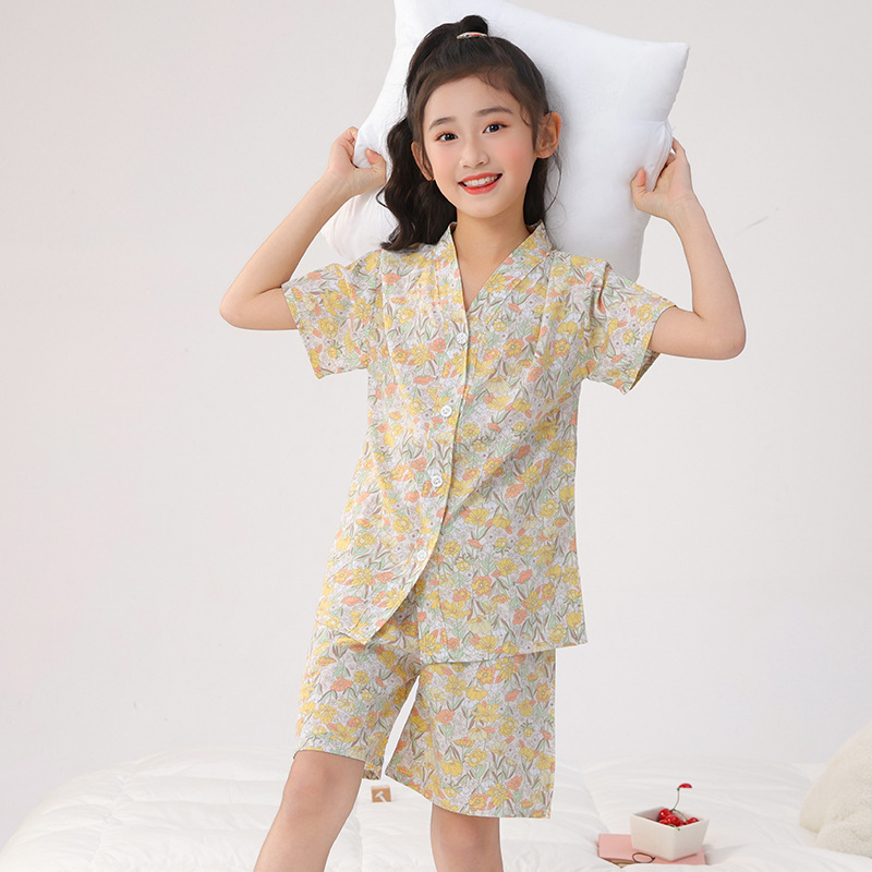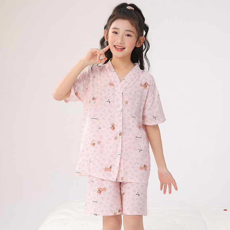 여름 어린이 잠옷, 가정복, 소년 소녀 반팔 양복, 큰 어린이 얇은 아동복, 여름 아기