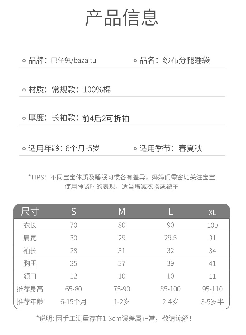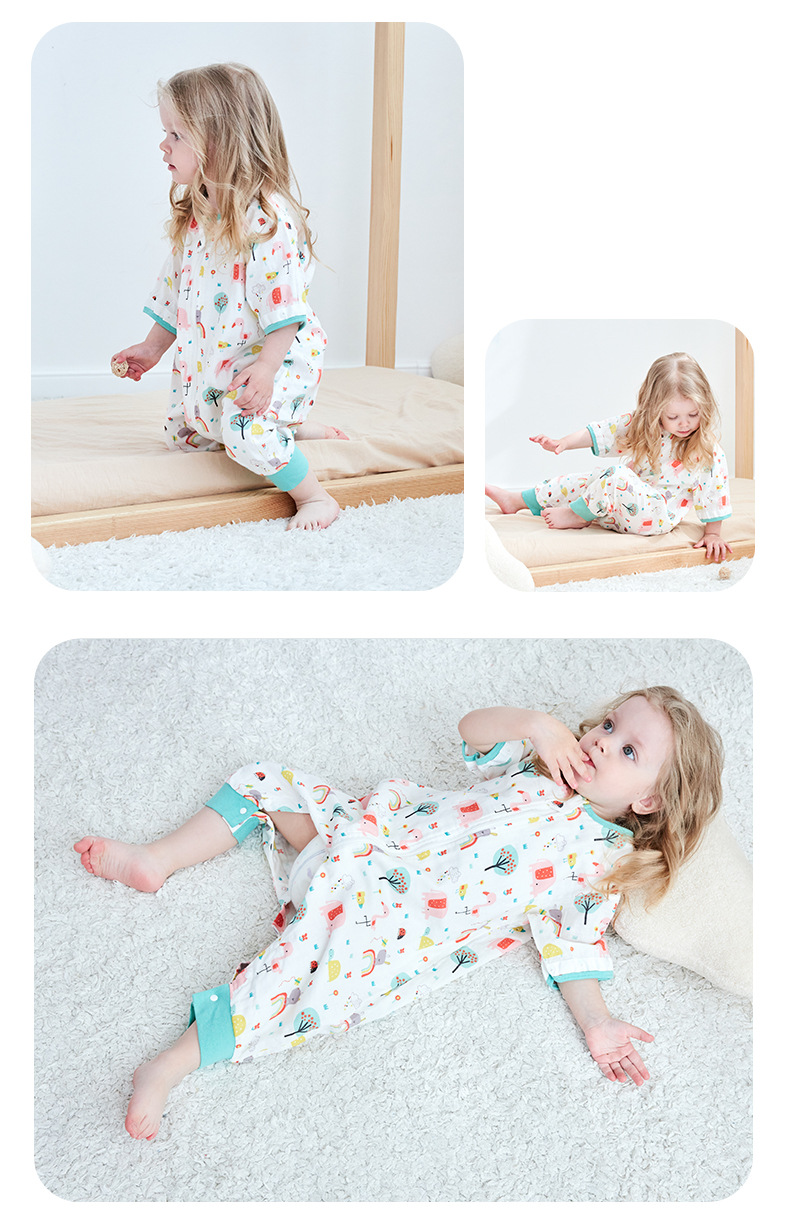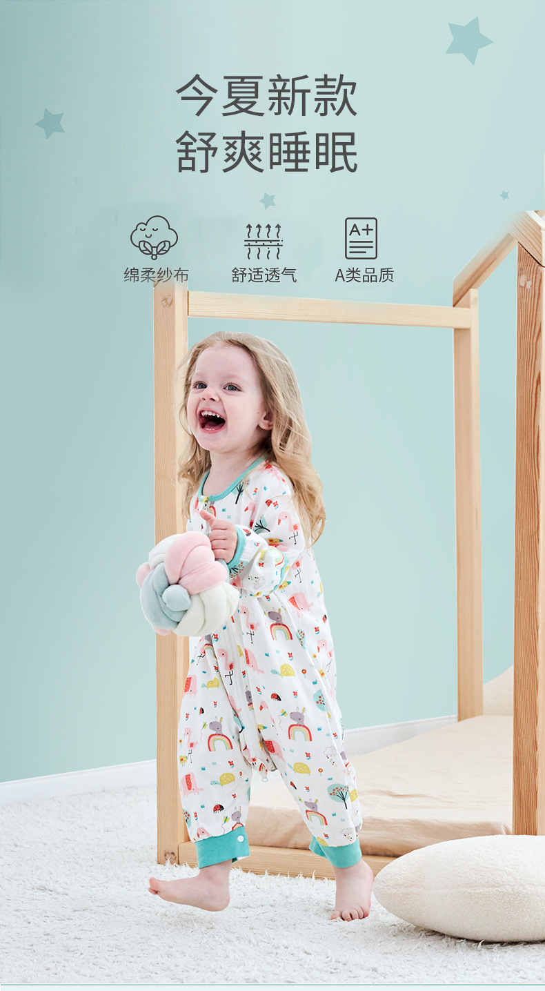 국경 간 여름 거즈 아기 잠옷 분할 다리 순수 면화 아기 안티 킥 에어컨 룸 어린이 침낭 통기성스토어 가기