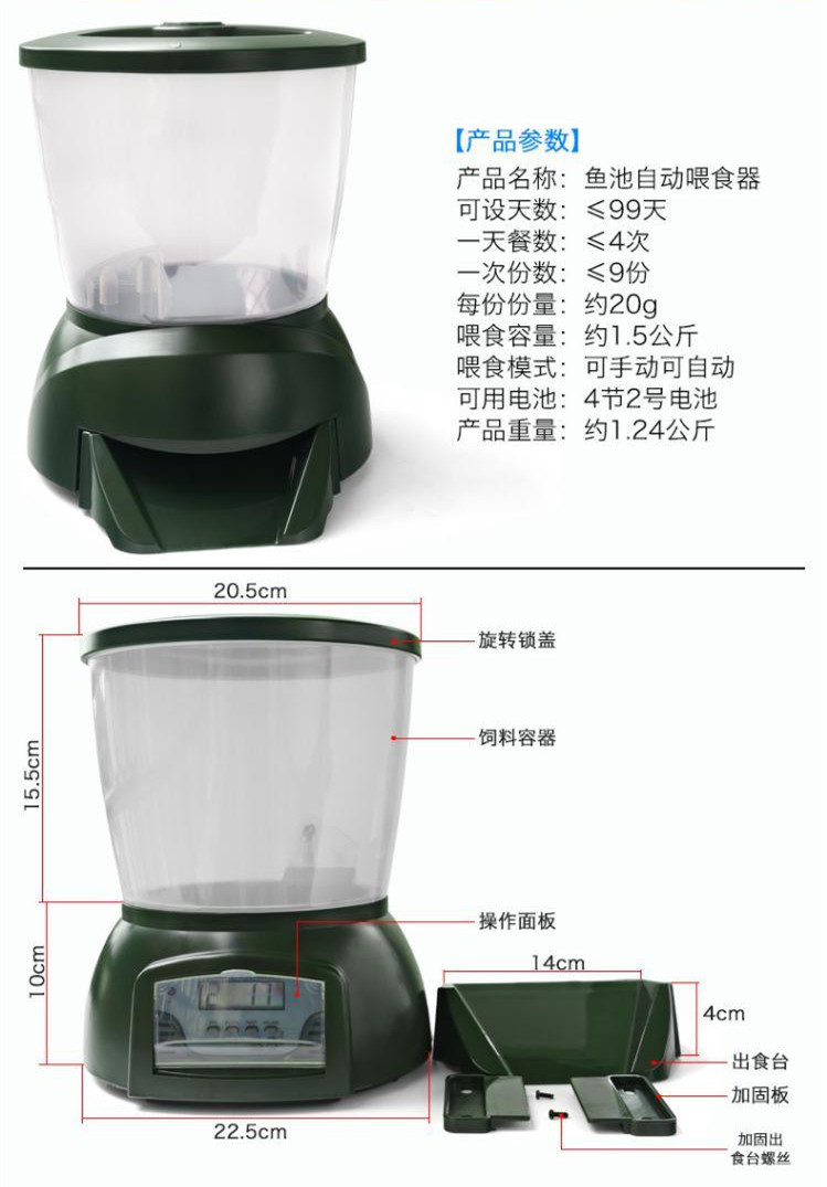 제바오 Jiebao 자동 피더 5L 물고기 연못 피더 초대용량 어항 잉어 물고기 연못 자동 먹이 물고기스토어 가기