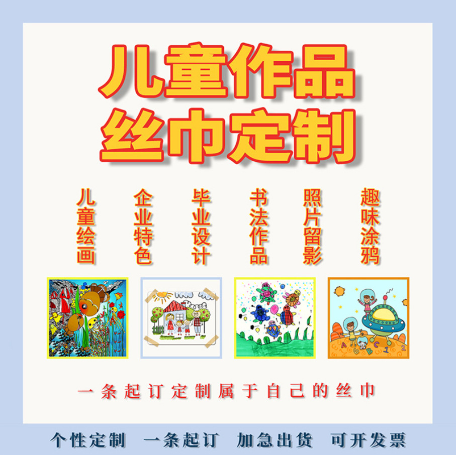 어린이 그림이 그려진 실크 스카프, 사진으로 제작하는 작은 사각 스카프, 기업 행사, 어머니날 선물, 무지 크레이프 새틴 스카프, 리본스토어 가기