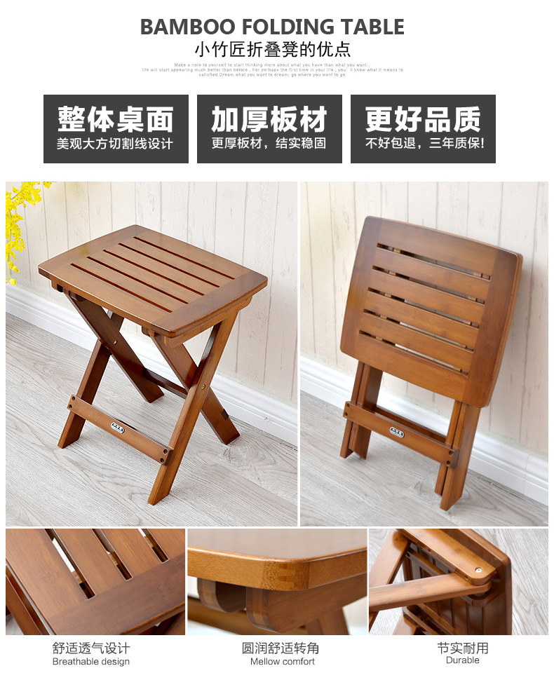 작은 대나무 메이커 접는 의자 휴대용 가정용 단단한 나무 마자르 야외 낚시 의자 작은 벤치 작은 의자 사각형 의자스토어 가기