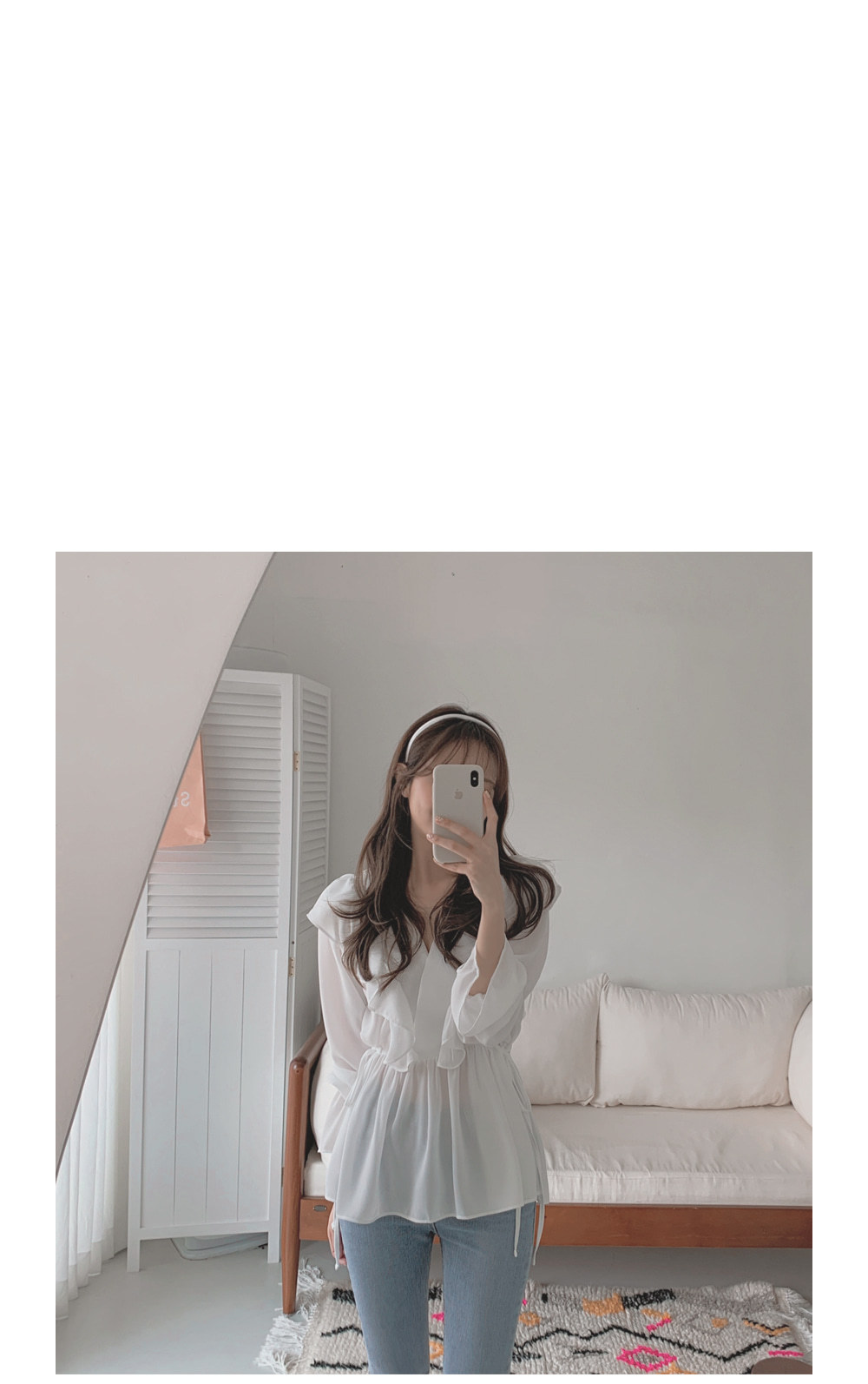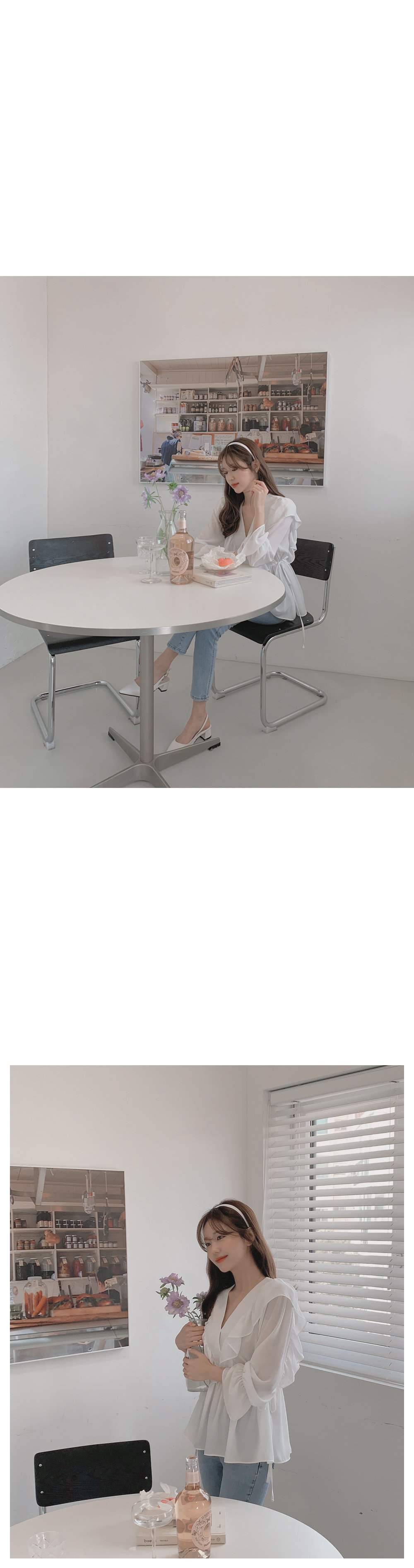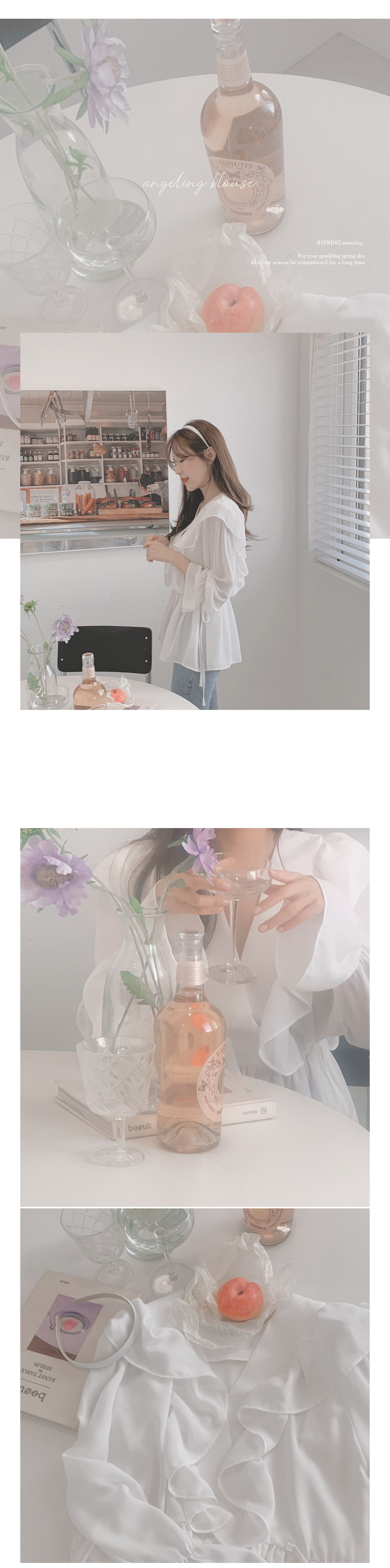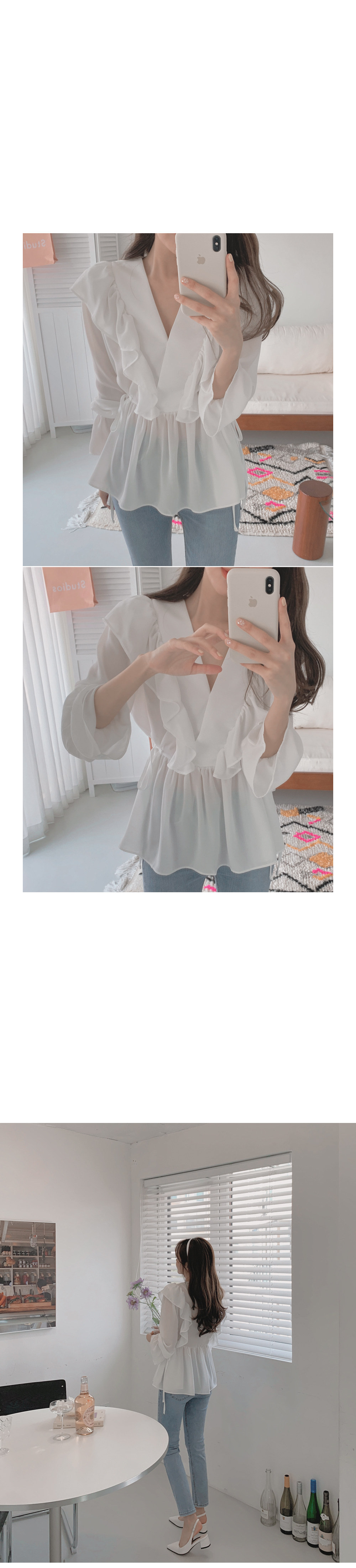 달콤한 러플 브이넥 레이스업 웨이스트 긴팔 셔츠 여성용 봄 우아한 슬림핏 화이트 쉬폰 탑스토어 가기