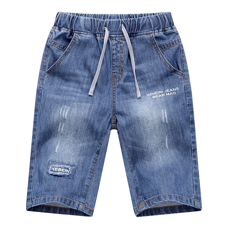 소년 데님 반바지 여름 얇은 아동복 카프리 바지 큰 어린이 유럽과 미국 레저 서양 스타일 어린이 바지 도매