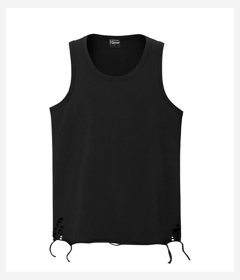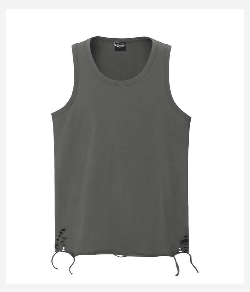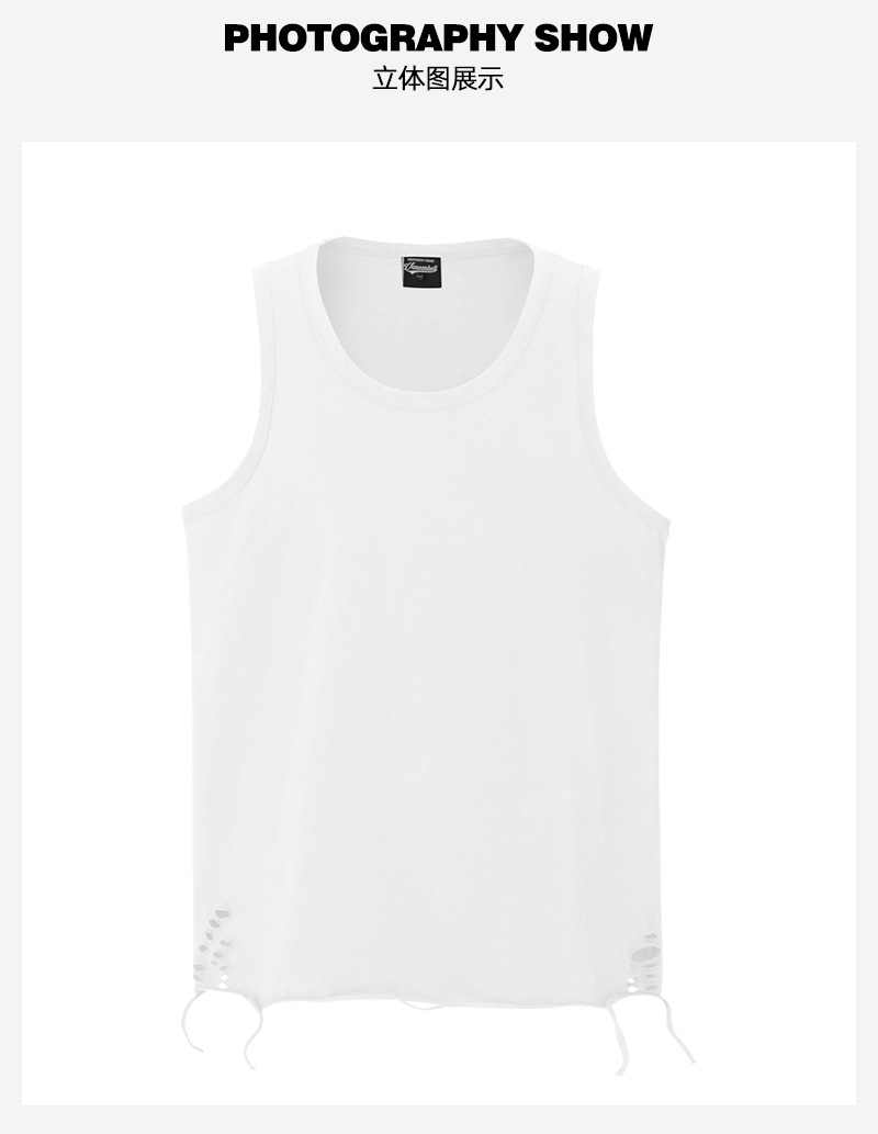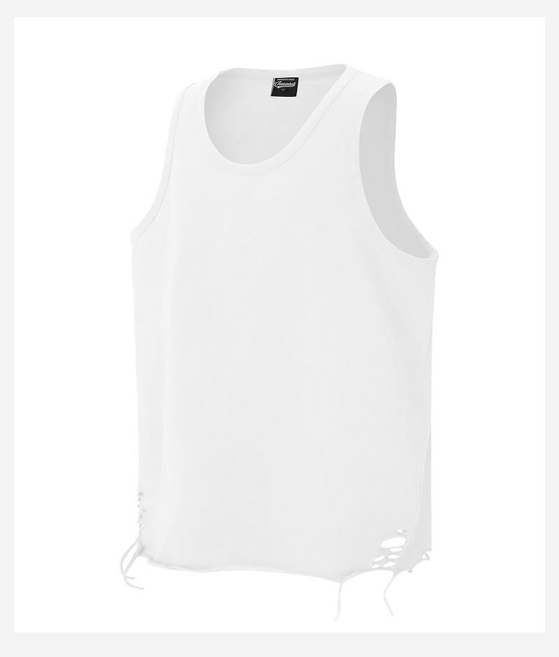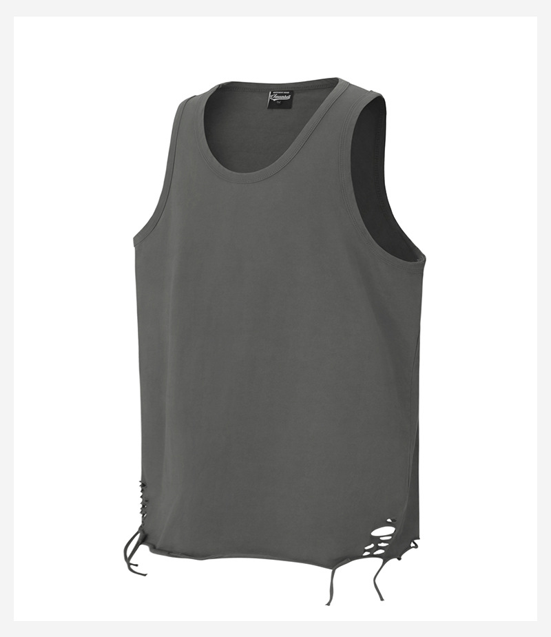 유럽과 미국의 트렌디한 브랜드 레이어드 조끼, 미국 하이 스트리트 홀 이너웨어, 남성용 루즈한 면 바닥 셔츠, 스트리트 복고풍 여름스토어 가기
