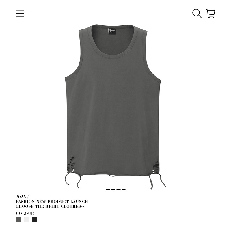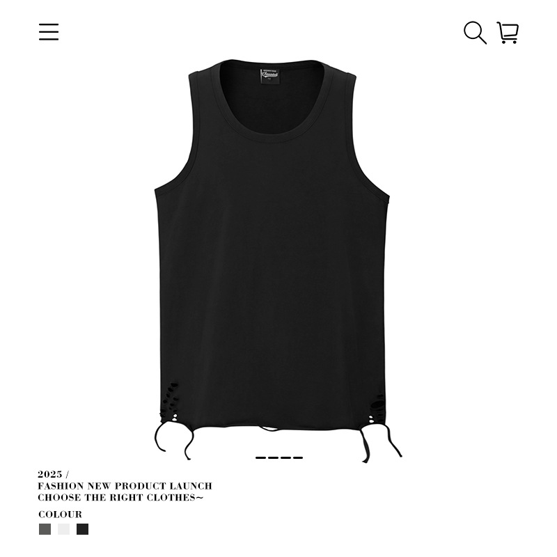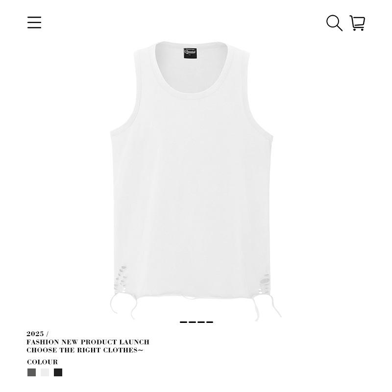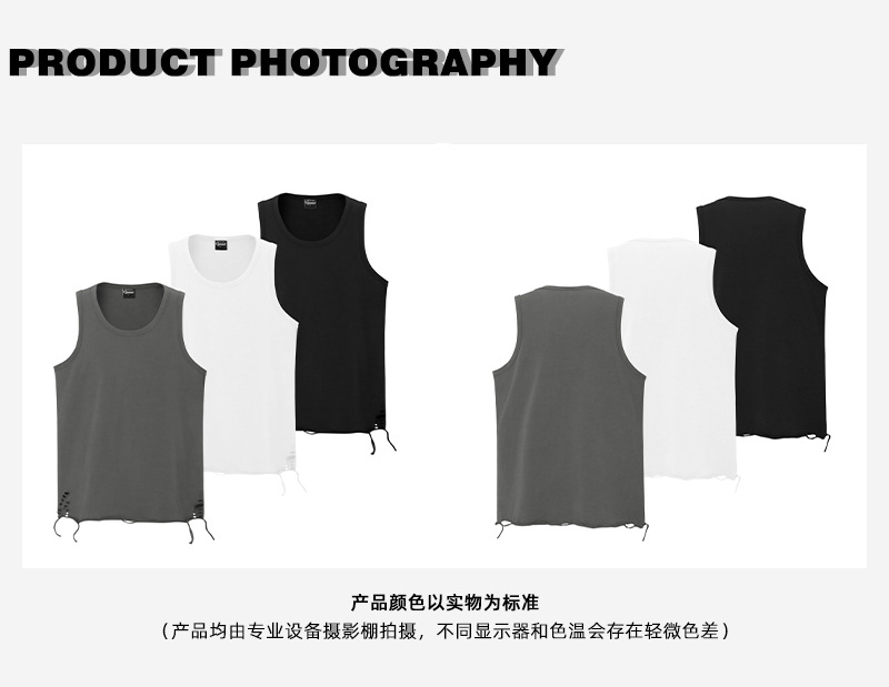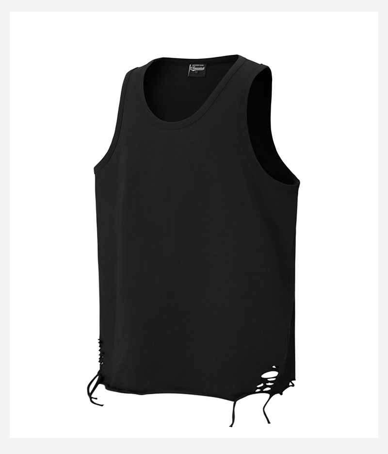 유럽과 미국의 트렌디한 브랜드 레이어드 조끼, 미국 하이 스트리트 홀 이너웨어, 남성용 루즈한 면 바닥 셔츠, 스트리트 복고풍 여름스토어 가기