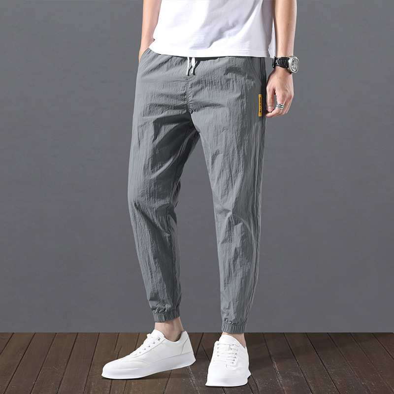 2021 남성 바지 캐주얼 발목 길이 바지 남성 유행 느슨한 스포츠 바지 아이스 실크 여름 얇은 남성 한국 스타일 발목 길이 바지