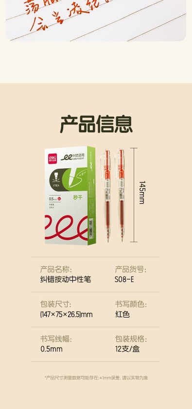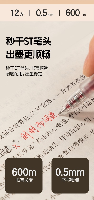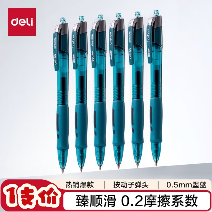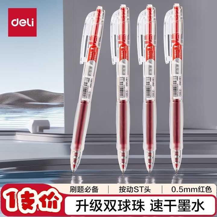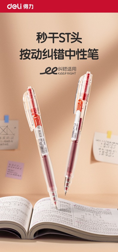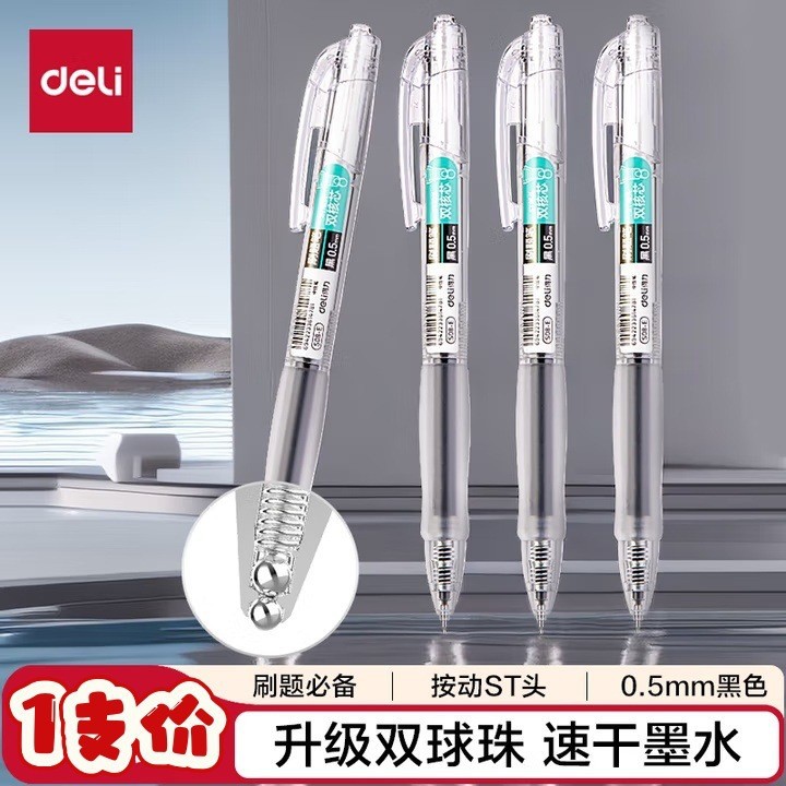 델리 젤펜 S08, 누르면 부드럽고 빠르게 건조되는 학생용 수성펜, 누름식 볼펜, 사무용 검정색 서명펜스토어 가기
