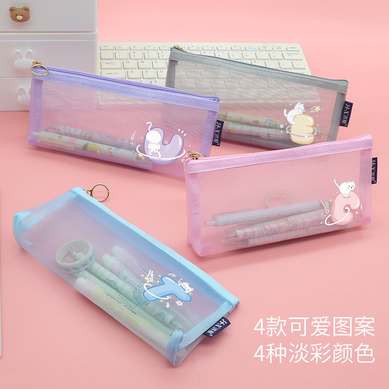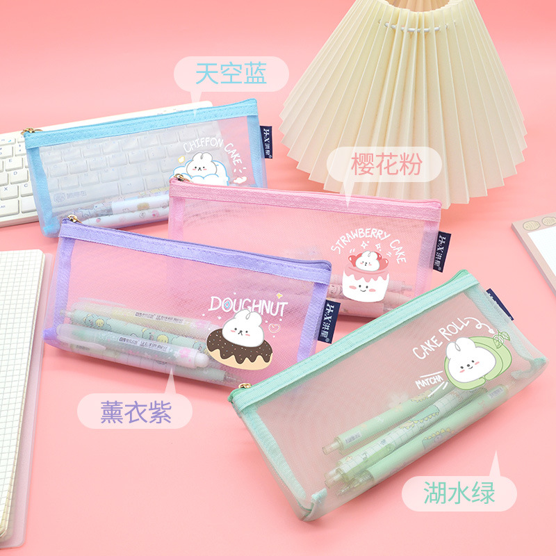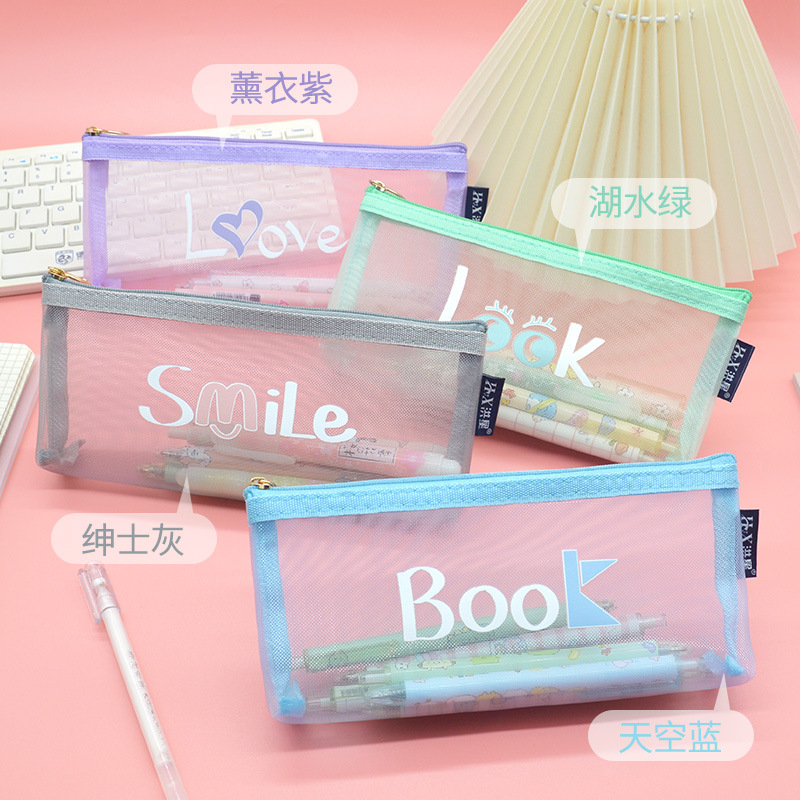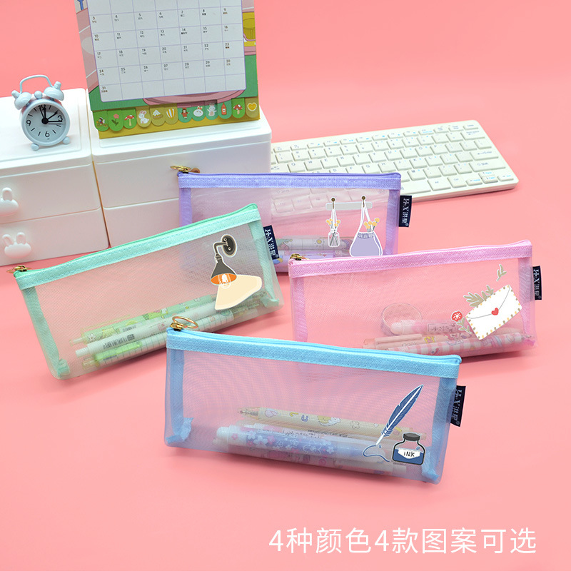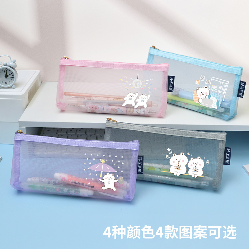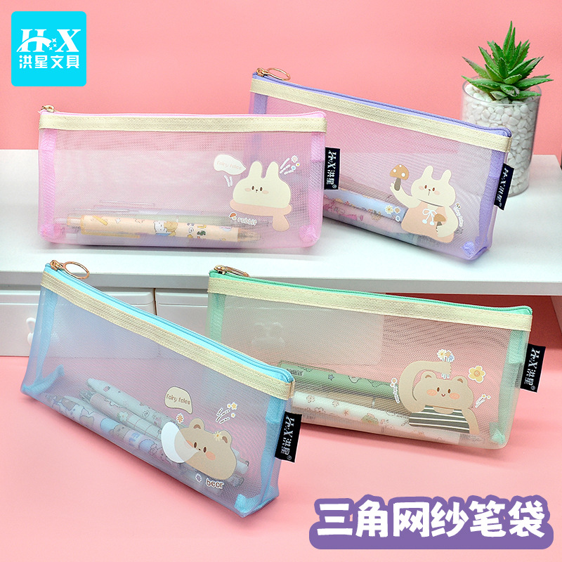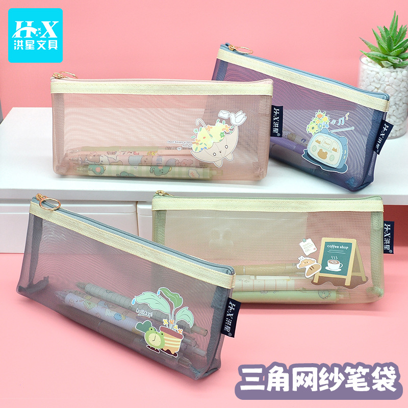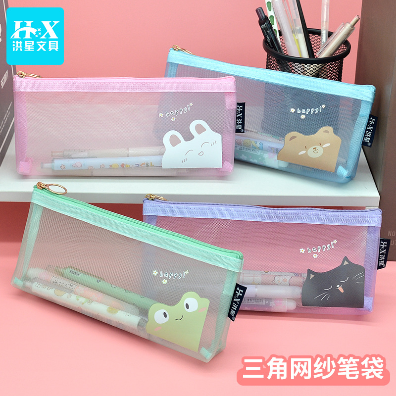 Hong Xing 투명 시험 필통 대형 삼각형 메쉬 필통 한국 학생 필통 연필 투명 문구 상자 크리 에이 티브