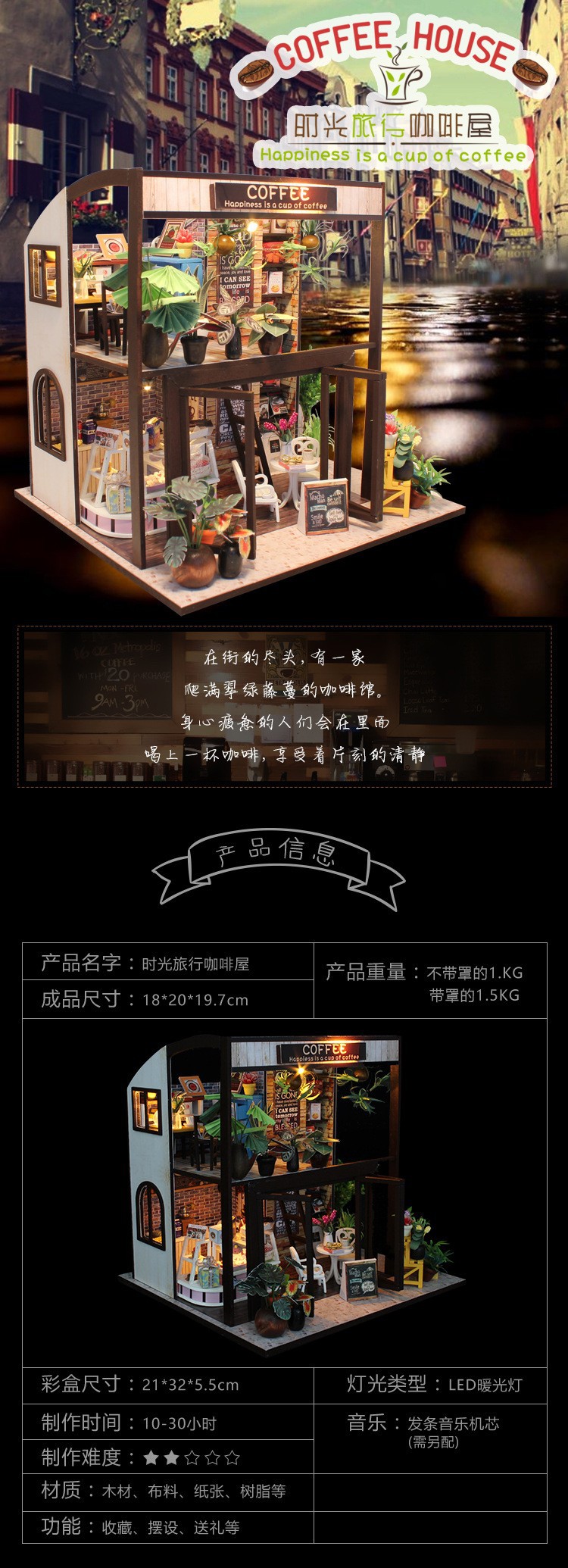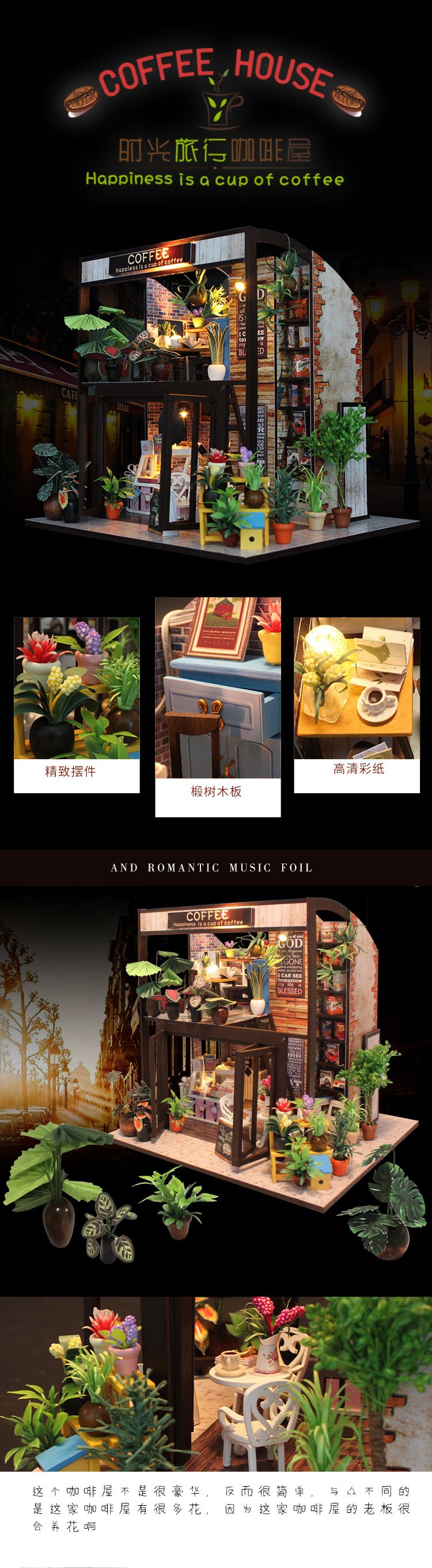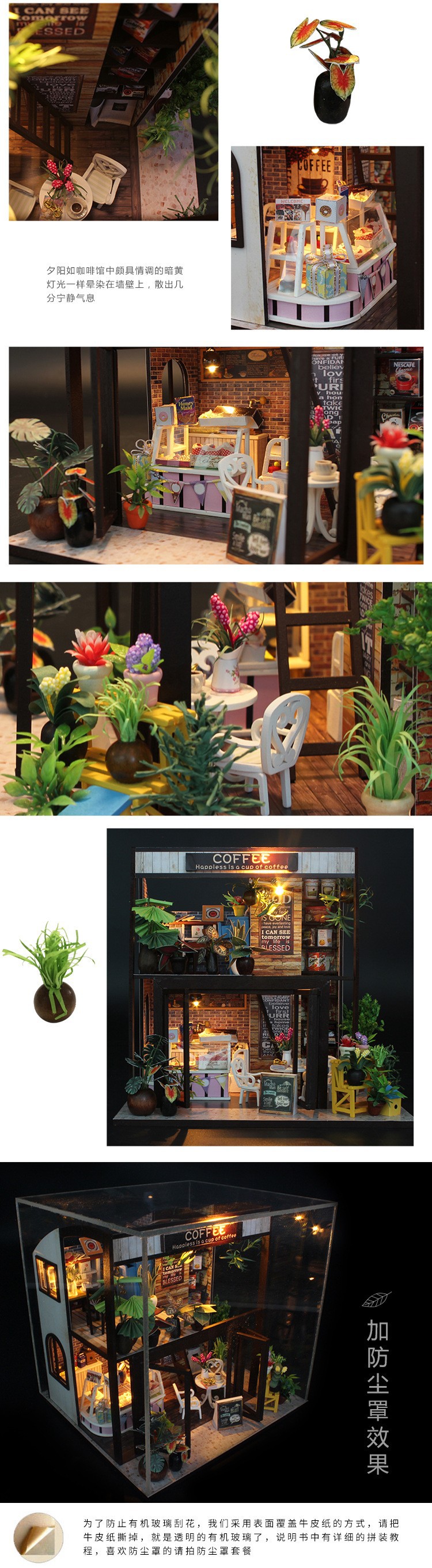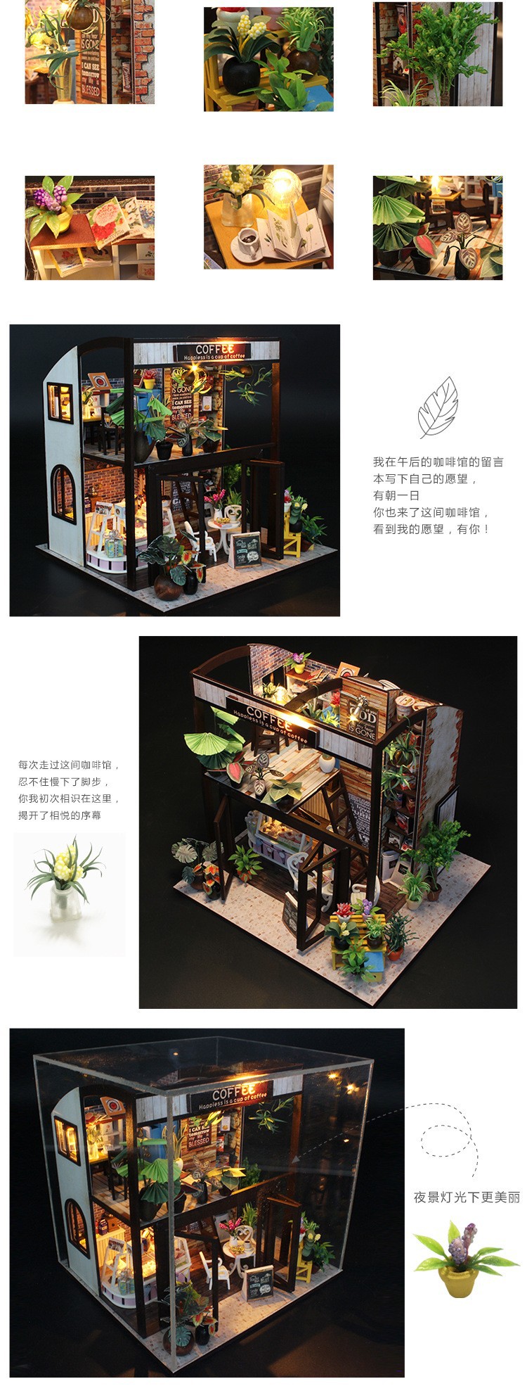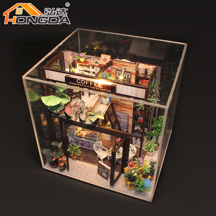홍다 창의적인 수제 DIY 소형 모델 하우스 미니어처 커피 장면 조립식 작은 집 공예 장식품 선물