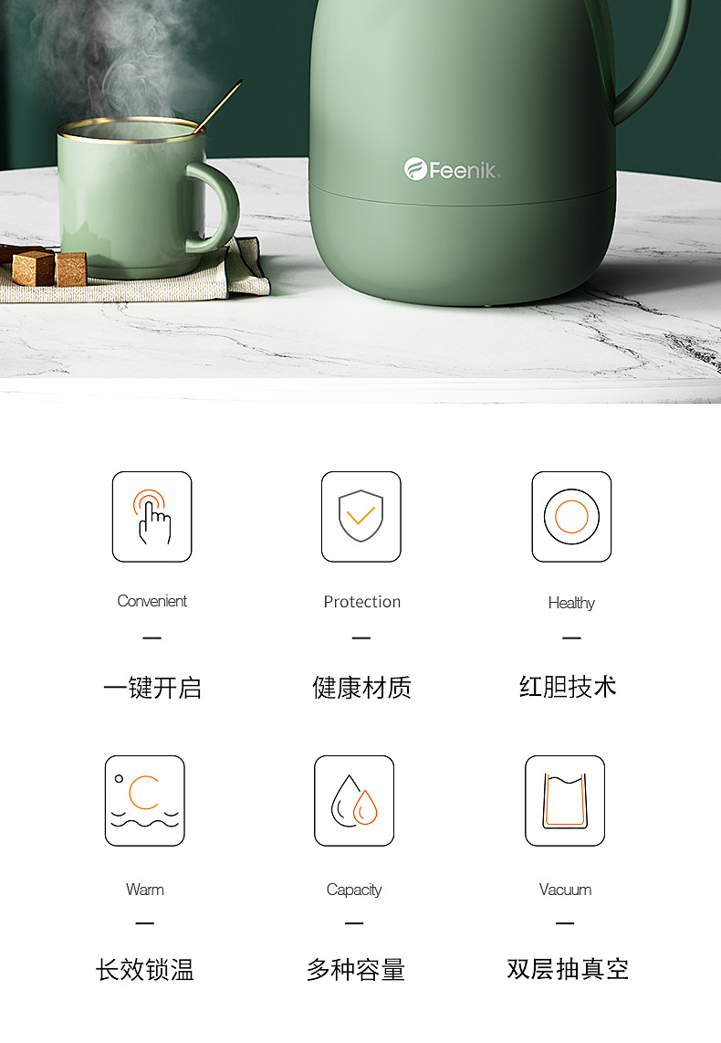 FEENIK 보온 주전자 가정용 보온병 대용량 휴대용 보온병 주전자 보온병 보온병