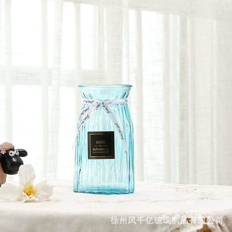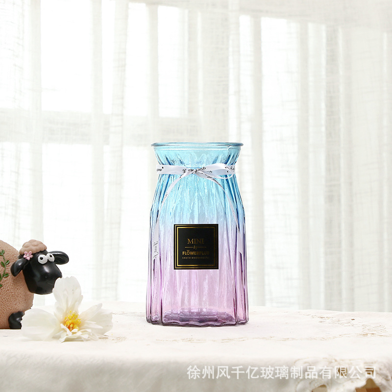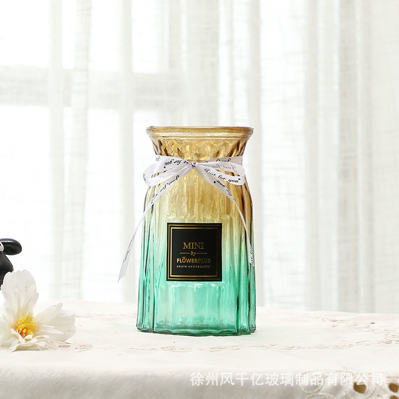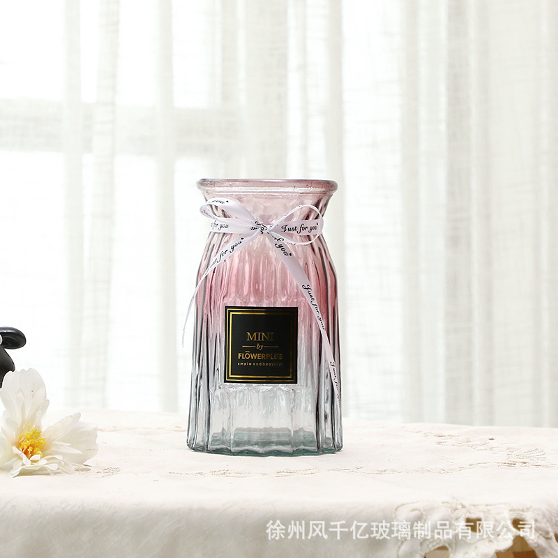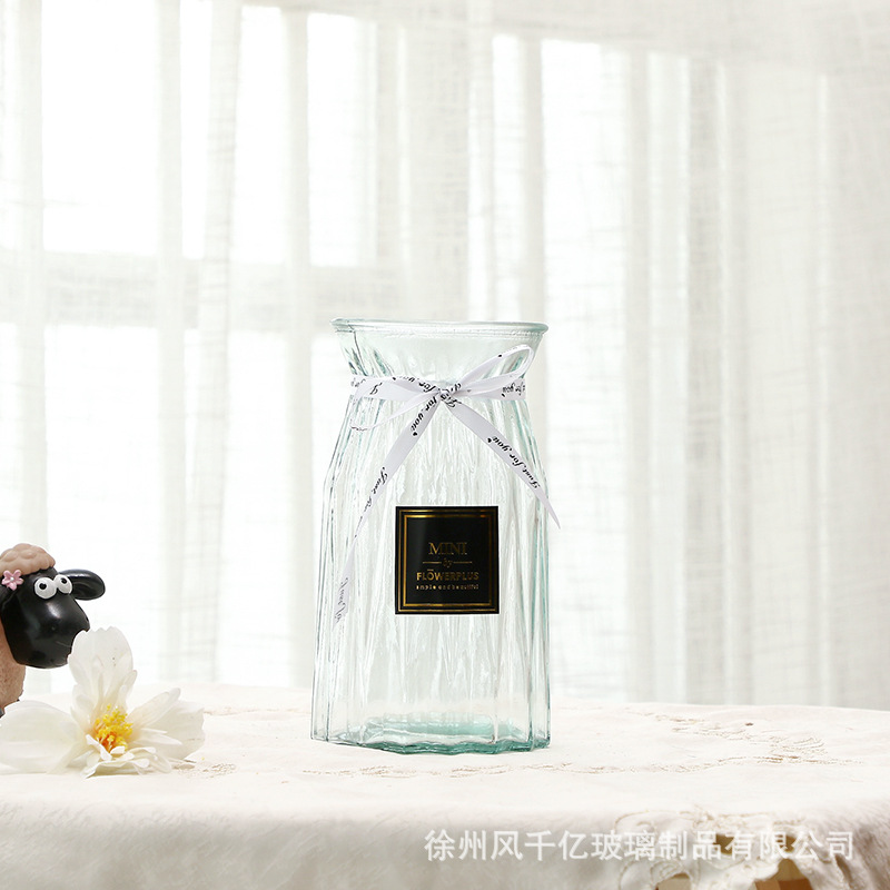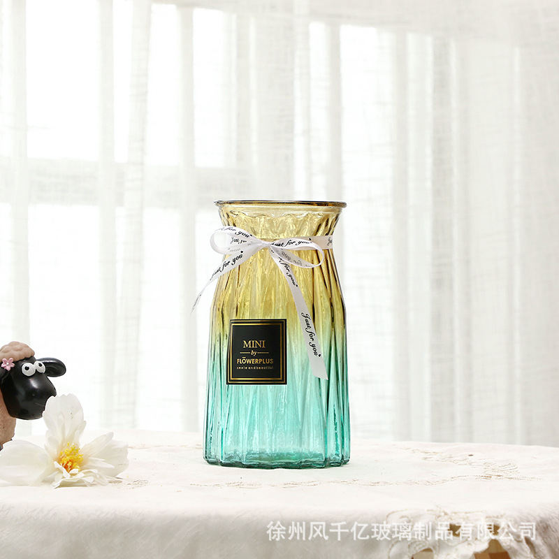 도매 색상 투명 종이 접기 유리 꽃병 수직 거실 장식 장식품 수경 꽃 배열 간단한 현대