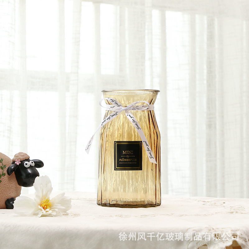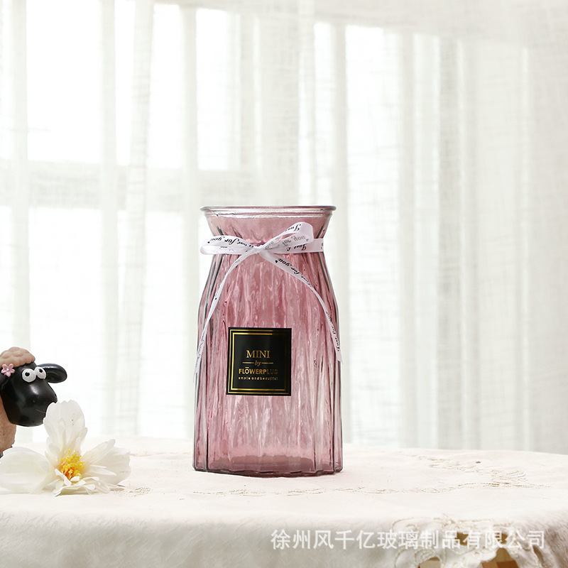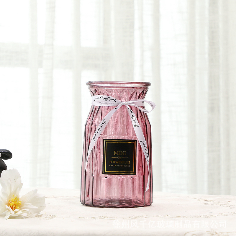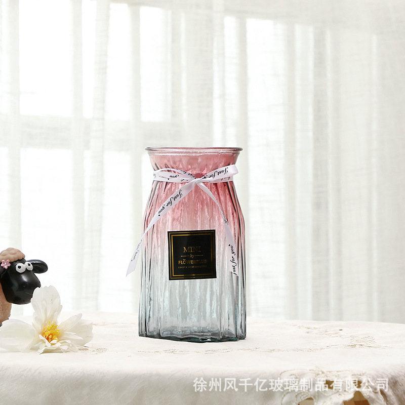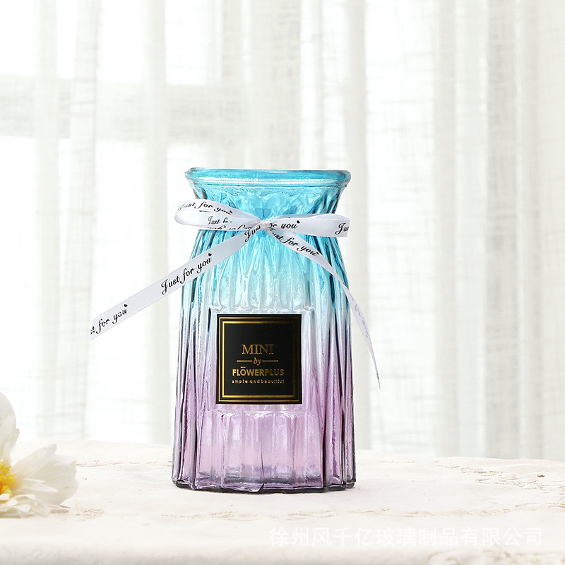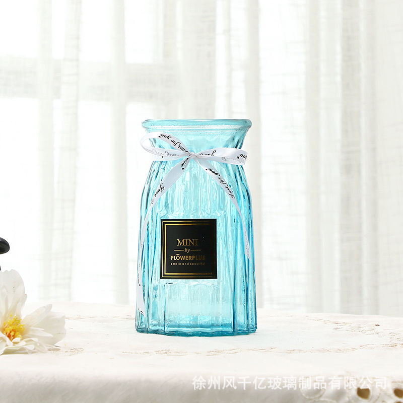 도매 색상 투명 종이 접기 유리 꽃병 수직 거실 장식 장식품 수경 꽃 배열 간단한 현대