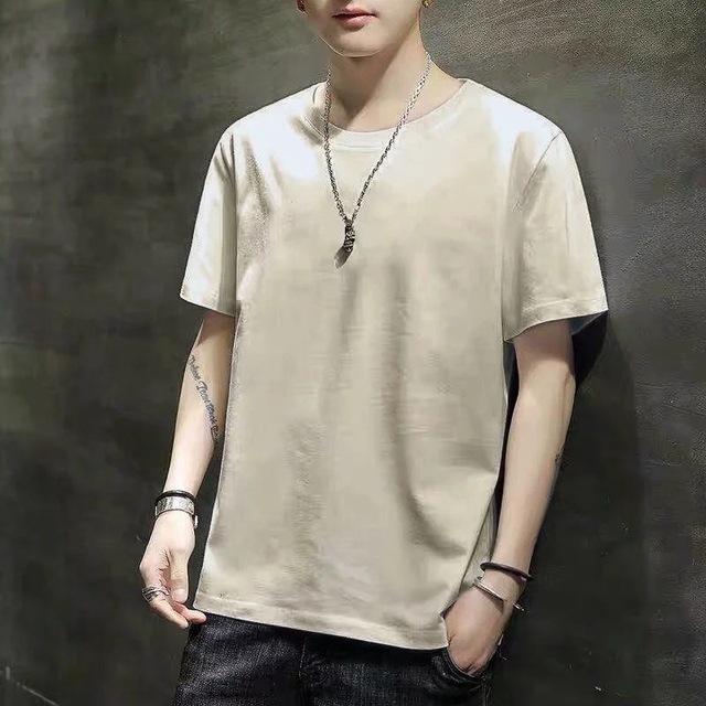 여름 남성용 반팔 티셔츠 트렌디 브랜드 한국 스타일 반팔 남성용 라운드넥 슬림핏 베이스 셔츠 남성 탑 십대 티셔츠스토어 가기
