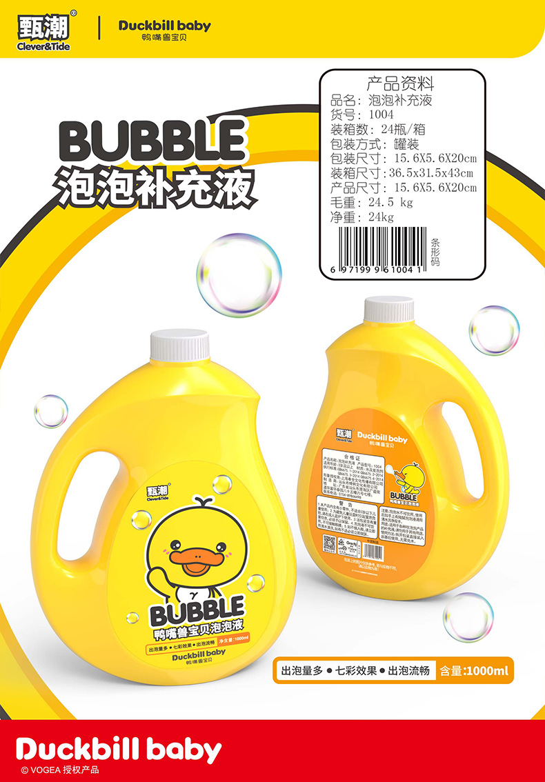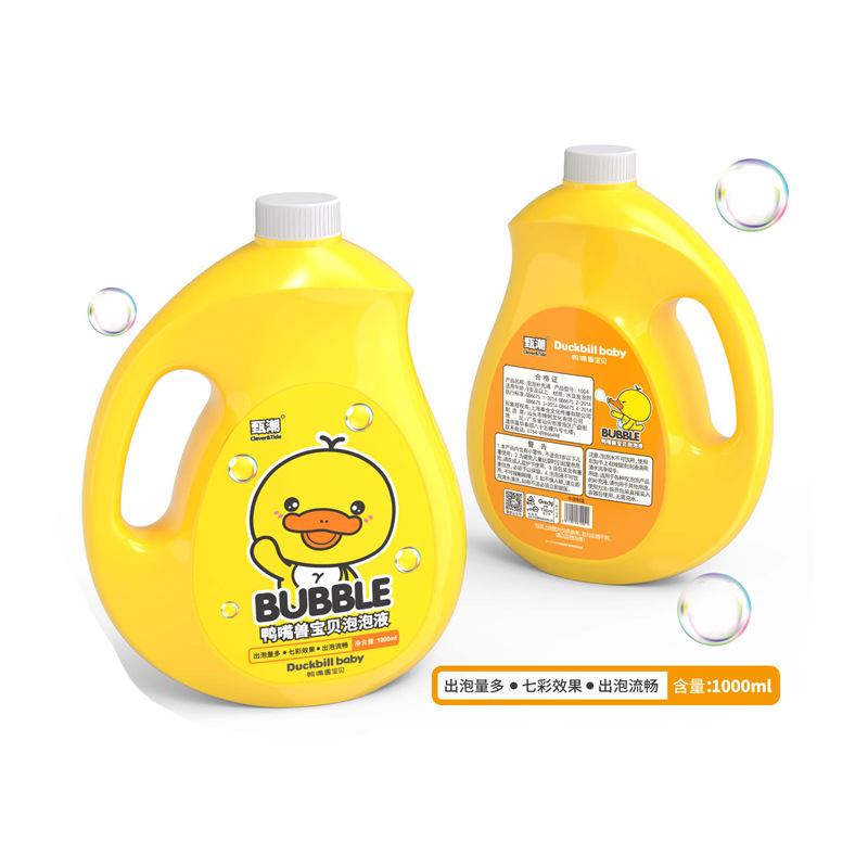 노란 오리 작은 거품 물 보충 액체 어린이 전기 거품 부는 기계 특수 스틱 총 장난감 집중 대형 병에 담긴 다채로운