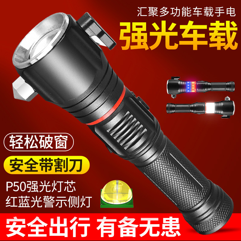 공장 직영 신다기능 알루미늄 합금 자동차 안전 망치 손전등 충전식 화재 비상 작업등스토어 가기