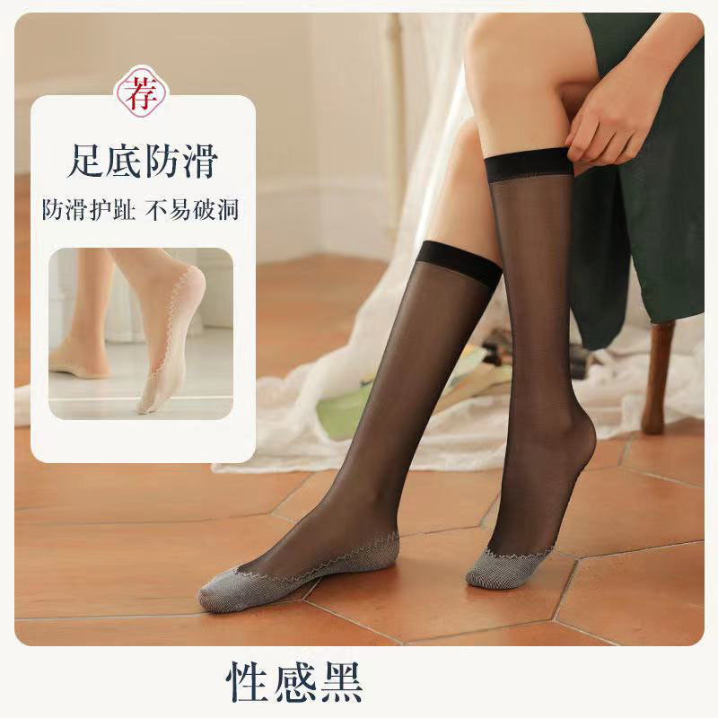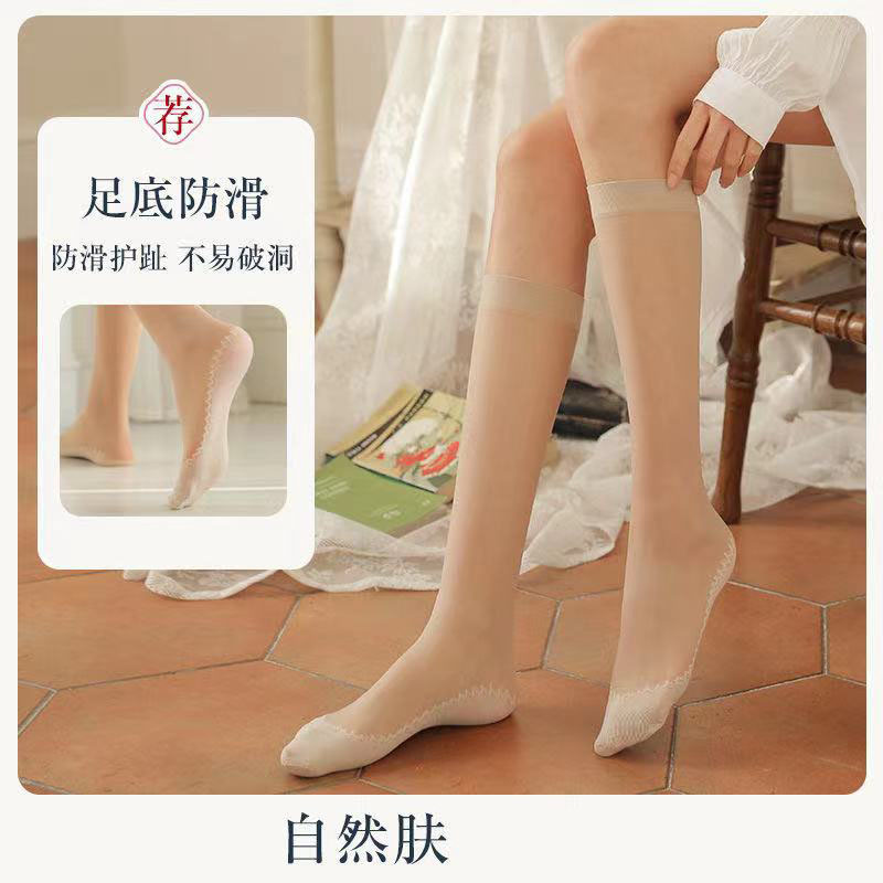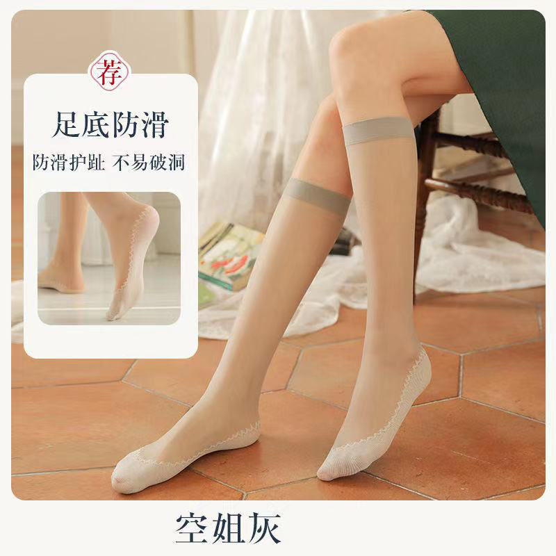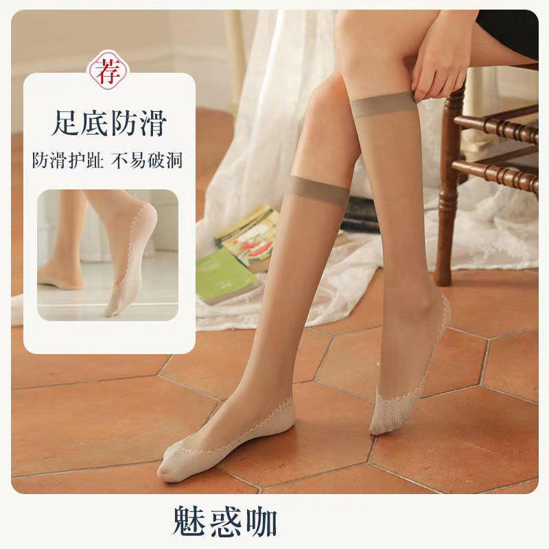 Longsha 미드 튜브 스타킹 여성용 여름 살색 중간 길이 송아지 양말 단독 면화 봄과 가을 여름 초박형스토어 가기