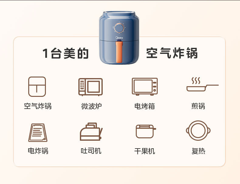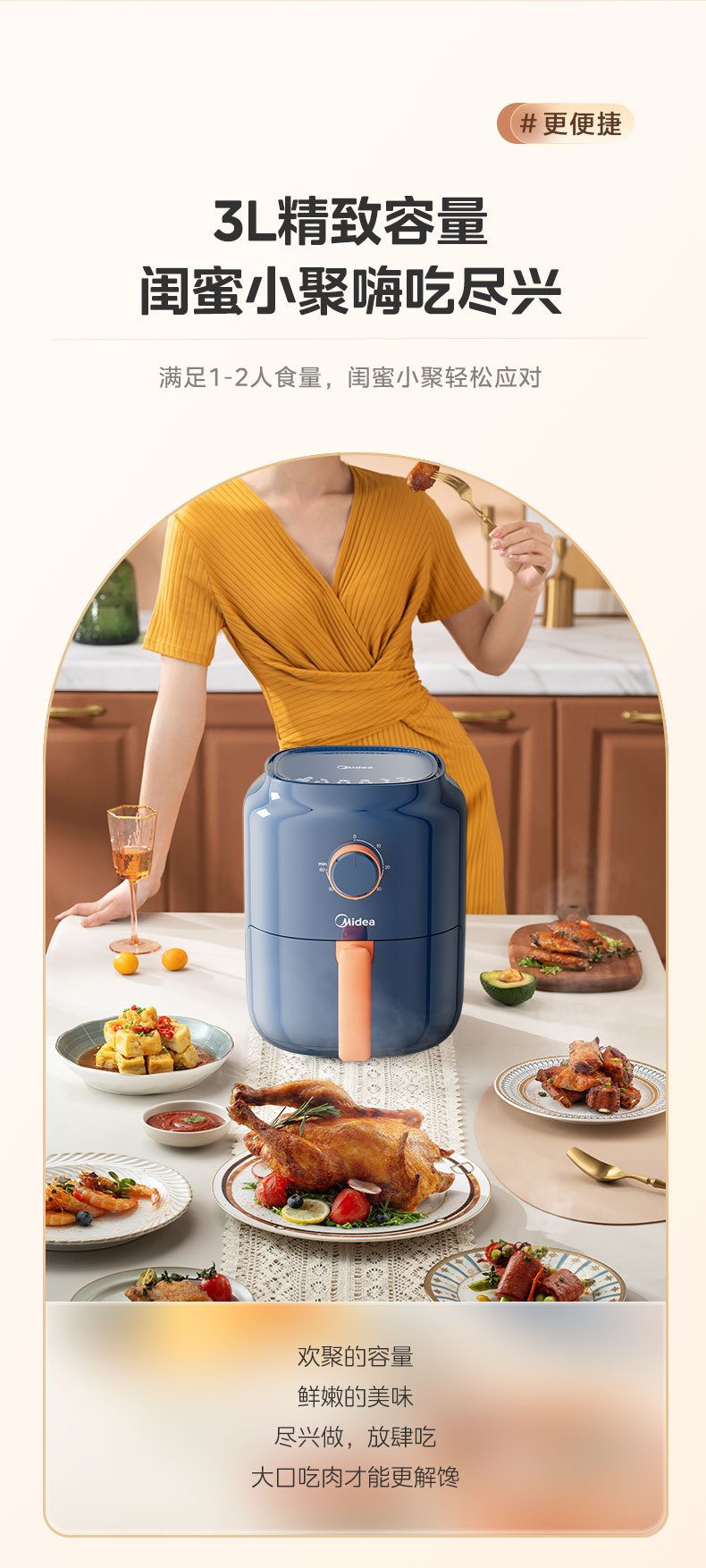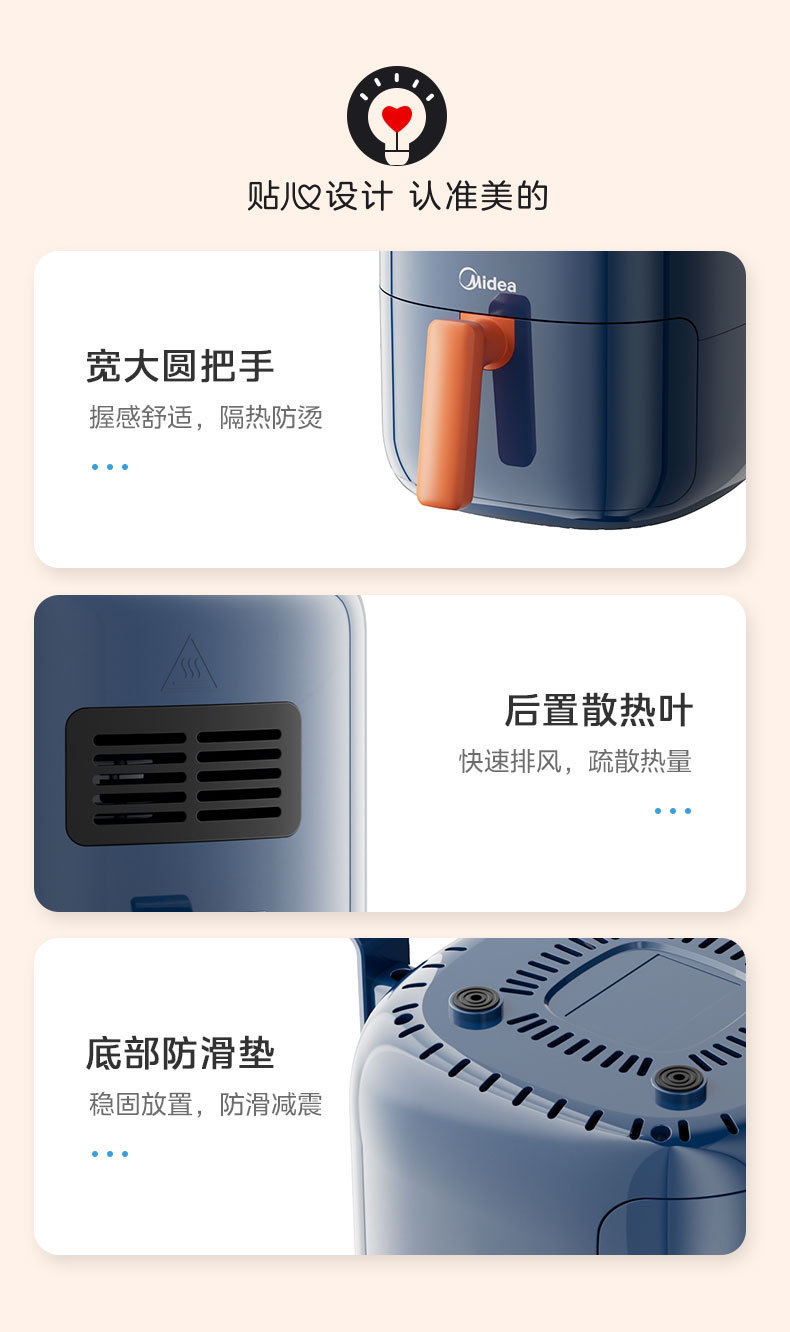 Midea 에어프라이어 가정용 대용량 전기 프라이어 3L 프라이어 MF-KZ30E201스토어 가기