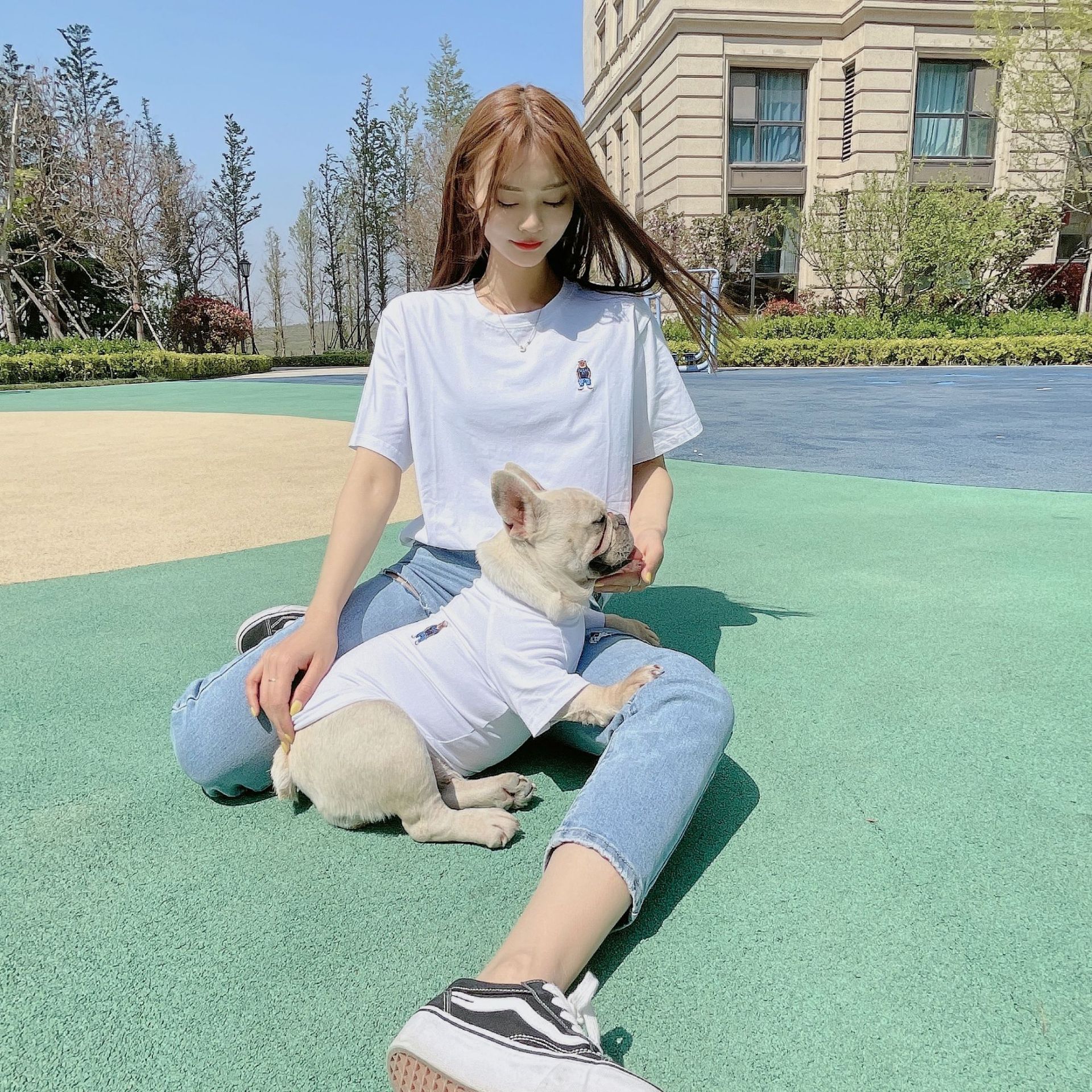 여름 개 한국 스타일 강아지 아이 옷 만화 곰 패턴 면 티셔츠 작은 개 가필드 키티 두 다리 옷스토어 가기