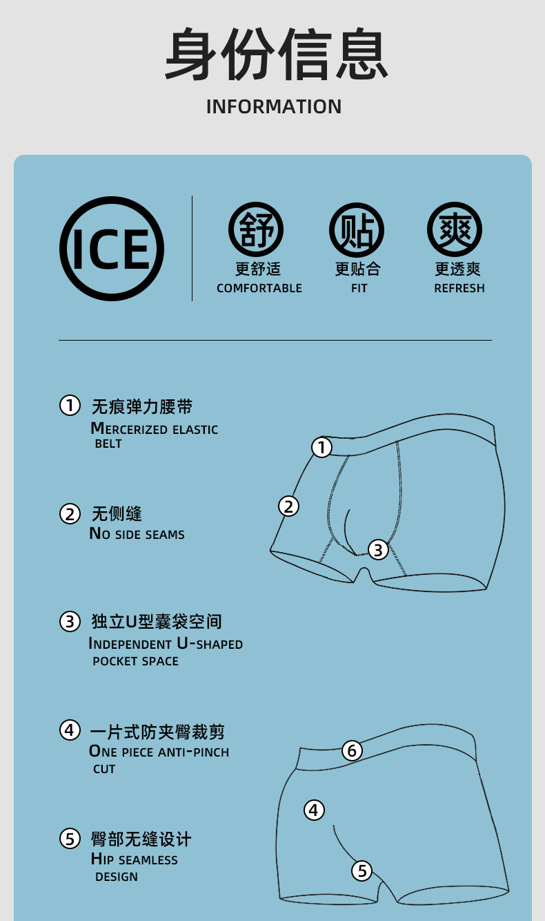 면 스타일 새로운 남성 속옷 아이스 실크 추적없는 복서 속옷 남성용 중간 허리 통기성 메쉬 4 코너 속옷스토어 가기