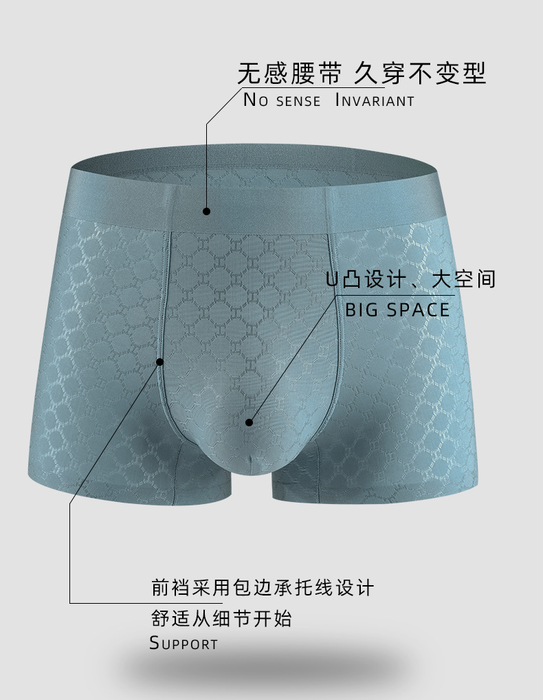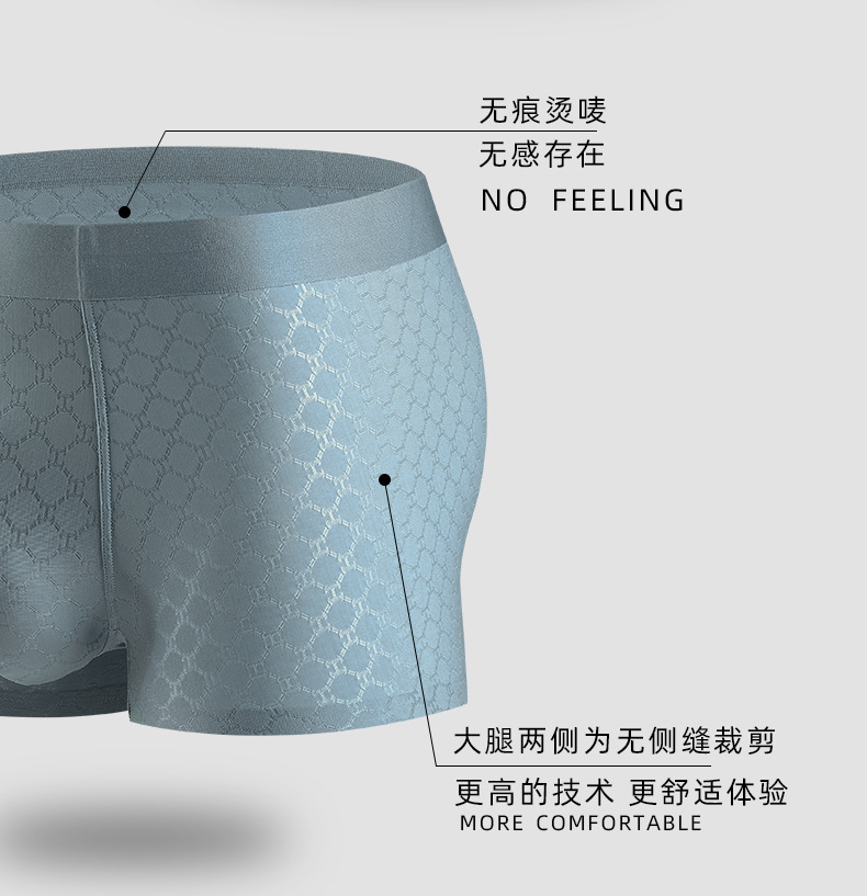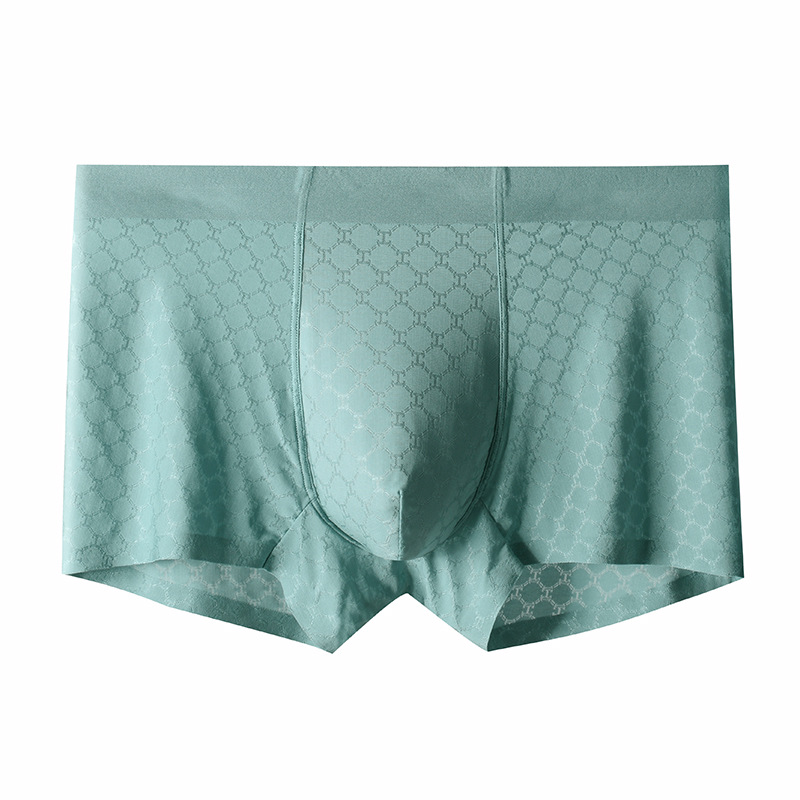 면 스타일 새로운 남성 속옷 아이스 실크 추적없는 복서 속옷 남성용 중간 허리 통기성 메쉬 4 코너 속옷