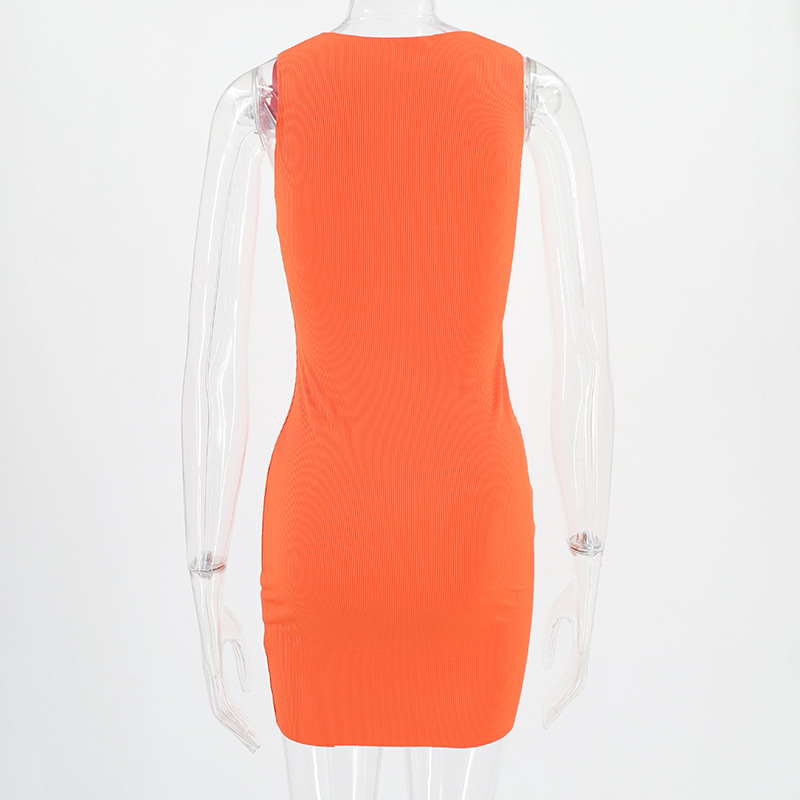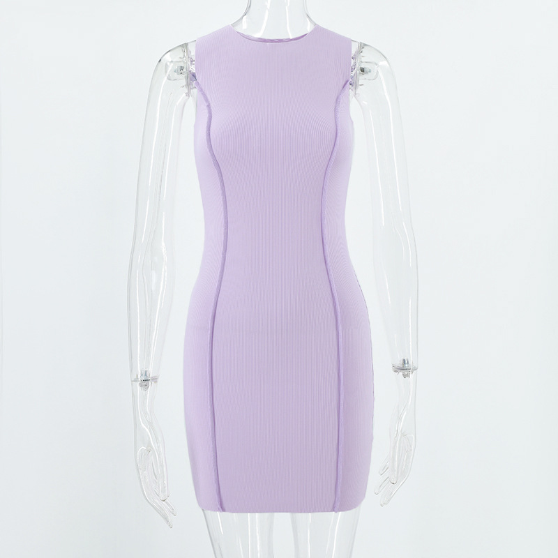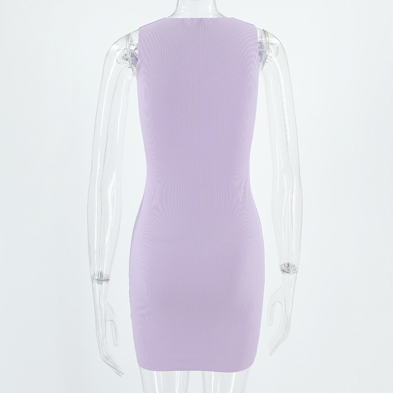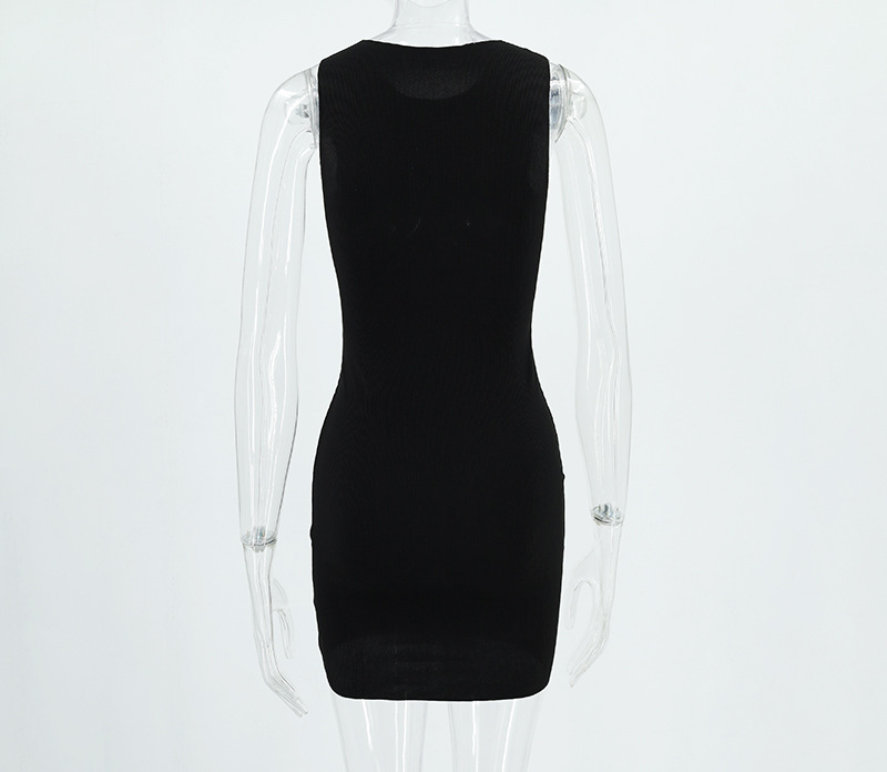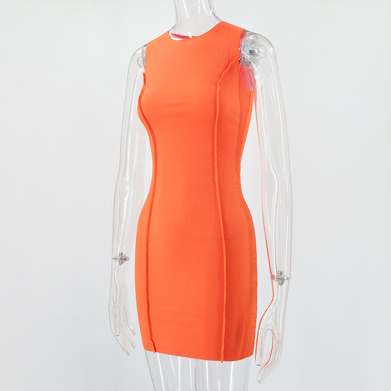 유럽과 미국의 인스타 스타일 여름 여성복 라운드넥 민소매 단색 패셔너블 슬림핏 허리라인을 강조하는 힙허깅 원피스 도매스토어 가기