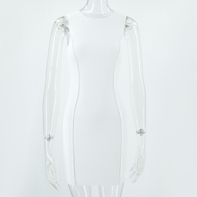 유럽과 미국의 인스타 스타일 여름 여성복 라운드넥 민소매 단색 패셔너블 슬림핏 허리라인을 강조하는 힙허깅 원피스 도매