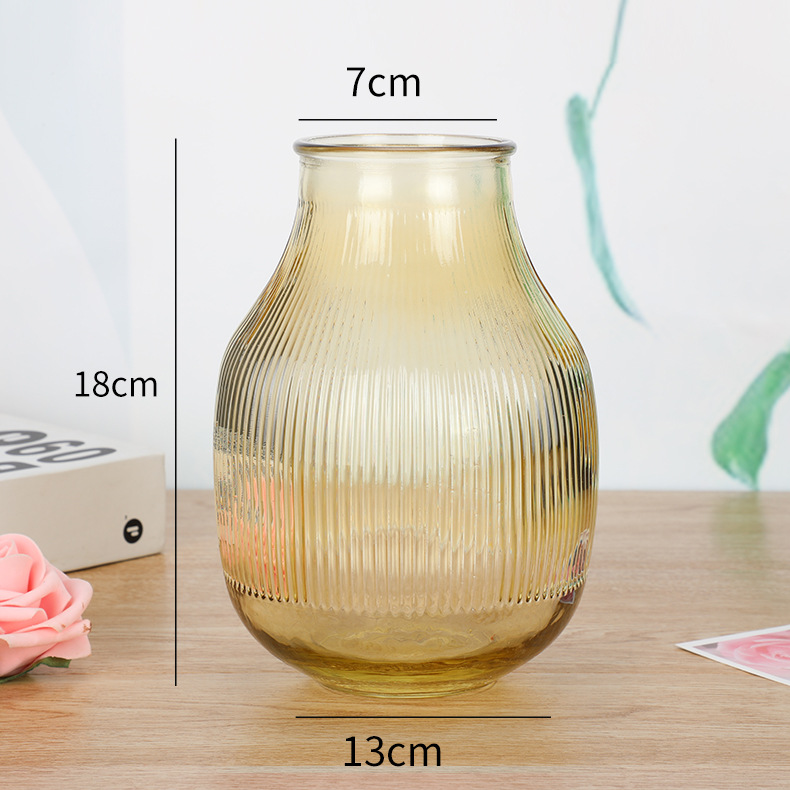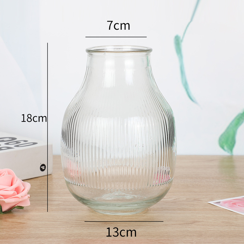 북유럽 간단한 큰 배 줄무늬 유리 꽃병 창조적 인 수경 말린 꽃꽂이 홈 장식 바탕 화면 장식스토어 가기