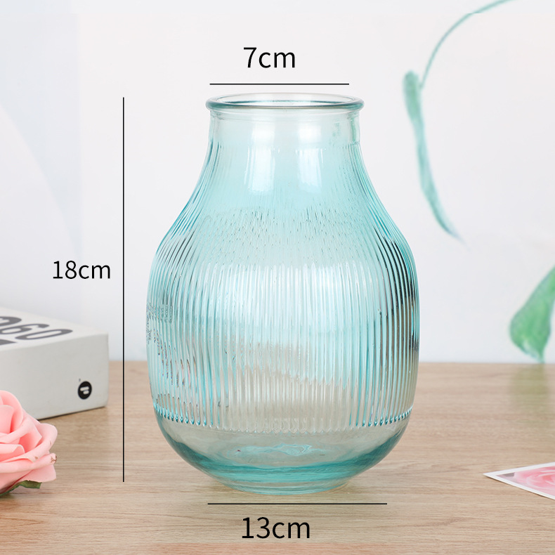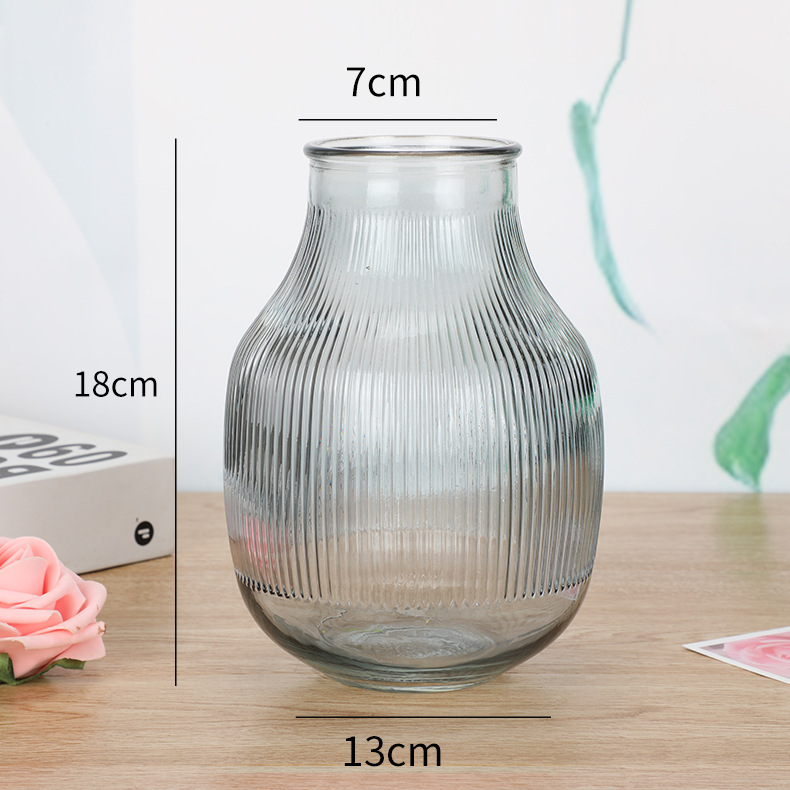 북유럽 간단한 큰 배 줄무늬 유리 꽃병 창조적 인 수경 말린 꽃꽂이 홈 장식 바탕 화면 장식