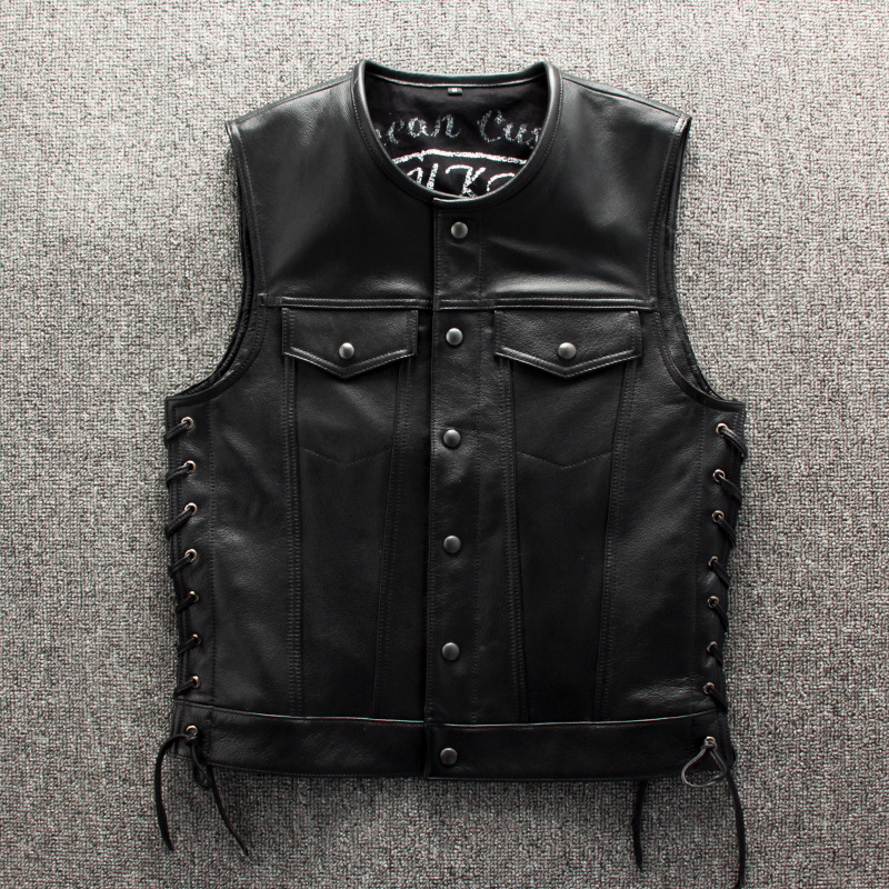 신제품 Son of Chaos 정품 가죽 조끼 남성용 탑 레이어 소가죽 칼라 슬림핏 록 오토바이 가죽 조끼스토어 가기