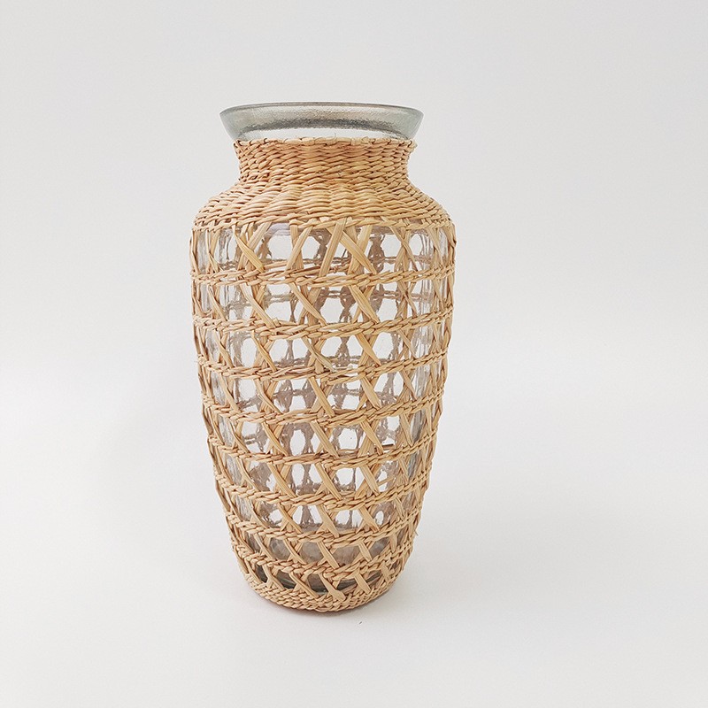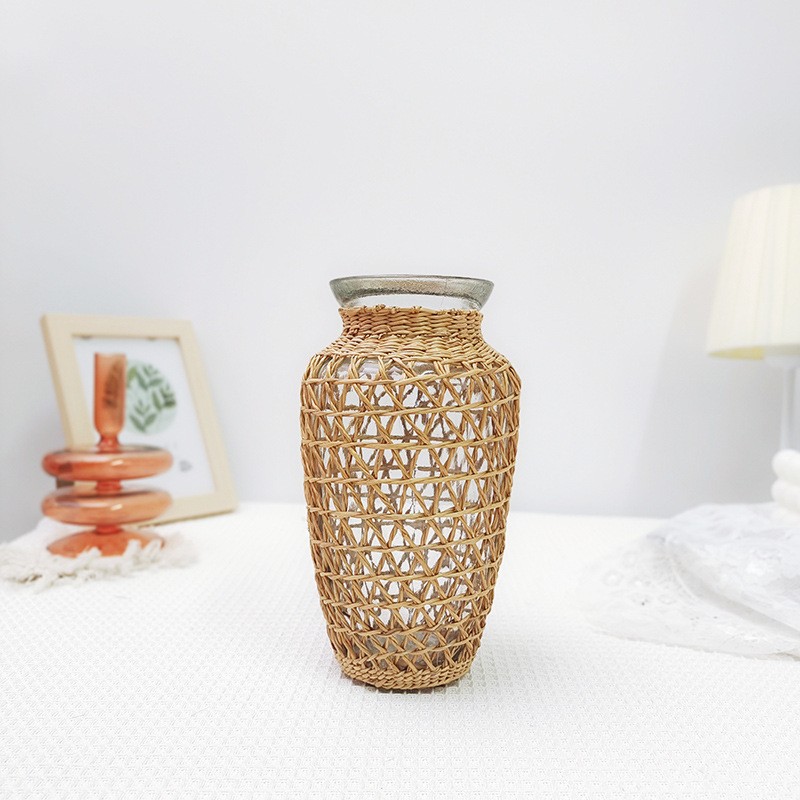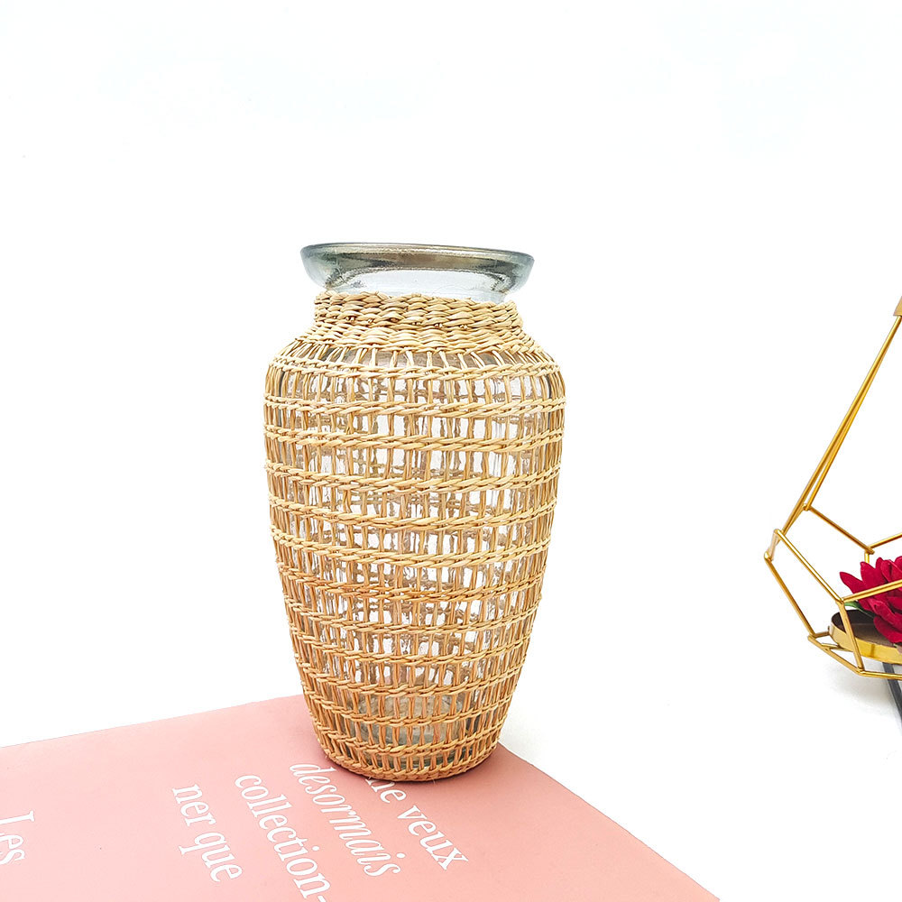국경 간 대외 무역 도매 등나무 밀짚 유리 꽃병 in 스타일 창조적 인 가정 장식 장식품 수경 꽃