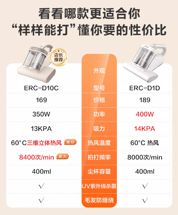 수포르 진드기 제거기 가정용 침대 청소기 강력한 흡입력 자외선 소파 고양이 털 제거기 ERC-D10C