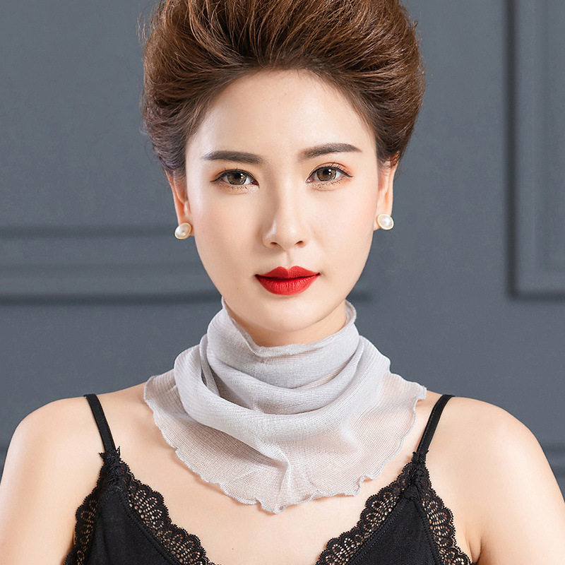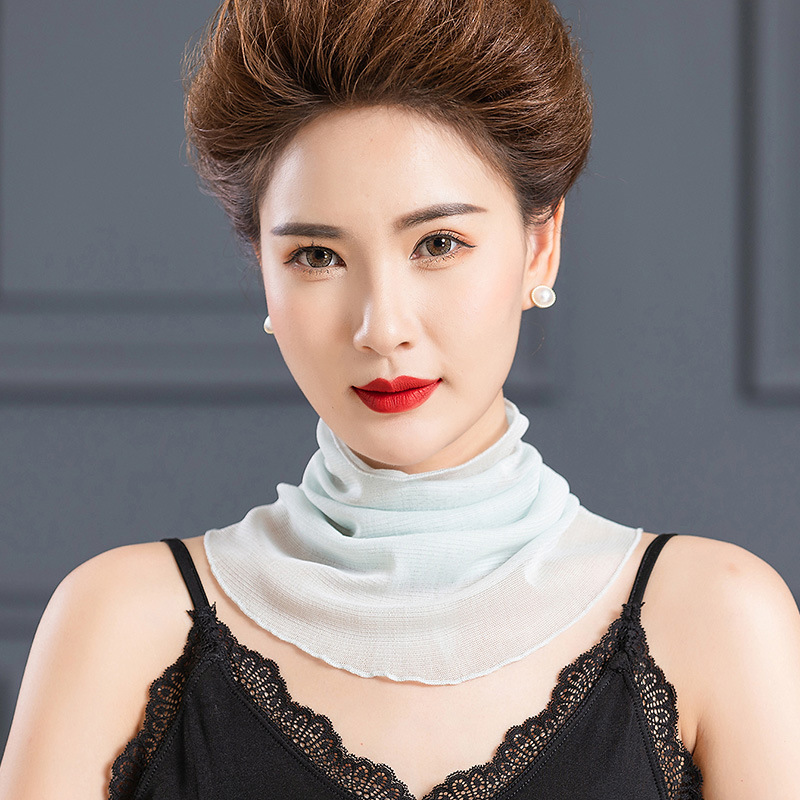 자외선 차단제 스카프 여성용 여름 풀오버 얇은 실크 스카프 메쉬 가짜 칼라 모든 매치 뽕나무 실크 목 보호 목 소매